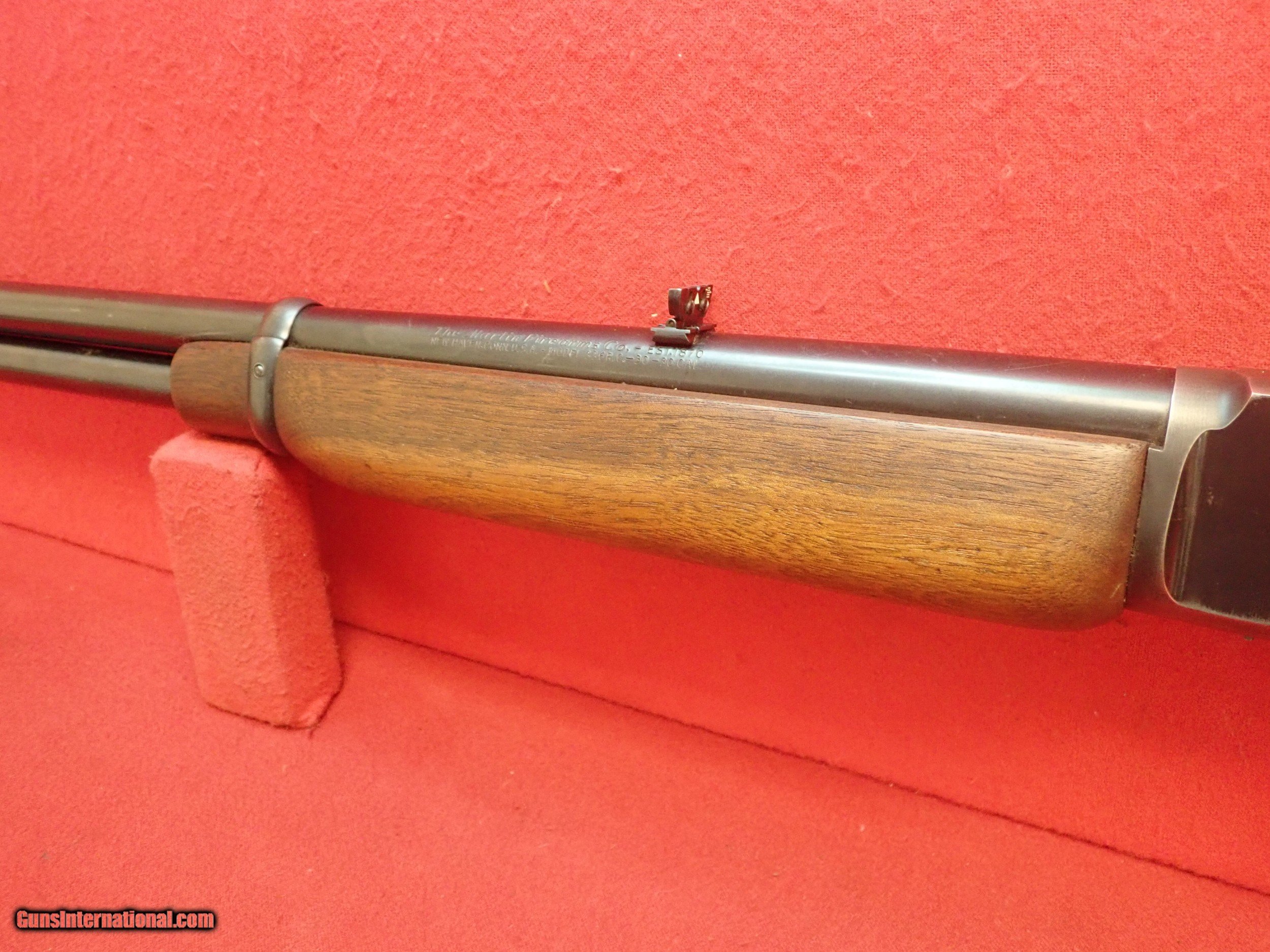 Description: Marlin 336RC Lever Action Rifle chambered in .30-30 Winchester, dated to 1953. This rifle features smooth walnut furniture with a blued finish, and a tube magazine. A fixed front sight post is at the muzzle, and and adjustable flip-up rear sight is fitted to the barrel. The rifle is in good condition with signs of regular use, as seen in our photos. The lever action is glass smooth and the bore looks excellent. The rifle once had a Lyman diopter installed, however just the sight base remains. Please refer to the photos to further assess the condition of the rifle. A great hunting rifle with lots of character! SOLD Manufacturer: Marlin Model: 336RC Serial Number: K122 Caliber Info: .30-30 |