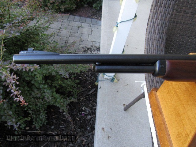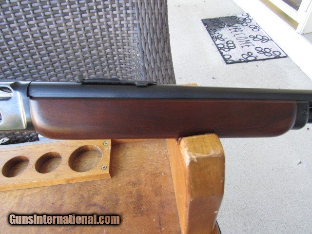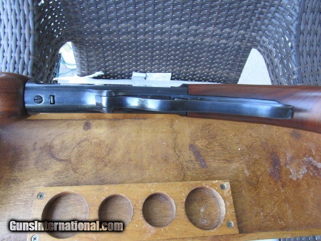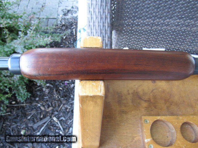 Description: ******* Dog days of summer special - Free Shipping!!! ******* Marlin Model 336SC "sporting carbine" in caliber 35 Remington with the desirable untapped "Waffle Top" receiver (note plug screws on left side of receiver for peep sight are factory), 20" round barrel, 2/3 magazine, plain trigger, plain walnut stocks, plain pistol grip, correct open sights with front sight hood missing, all metal parts blued, pre Micro Groove so has the Ballard style rifling, serial number H47160, made 1951. Original factory blue is 98% having a couple faint scratches on the barrel. Bore is mint. Forearm stock is sound with just a few little light dings; butt stock retains Marlin trademark Bullseye in toe line, although it looks like it fell out and was put back in as it is not flush with the stock. There is a chip missing upper left, otherwise just has a couple light nicks, correct Marlin logo butt plate and white line spacer. Correctly does not have the pistol grip cap and spacer, and also correctly has a blued trigger. Action is smooth with a properly functioning half cock safety. Feeds, functions, fires as it should (was very accurate with Remington LeveRevolution ammunition). No wobble to stocks or mag tube; stocks still tight and proud to metal. Beautiful, desirable configuration that will make someone an excellent collector, shooter and hunter. No international sales. Must ship to FFL or C&R license holder (recent changes in NY State law requires shipment to an FFL only if going to a NY State buyer). Payment by personal check, bank check or postal money order (sorry no credit cards). 3-day non-firing inspection. Buyer pays return shipping. Packed with care and shipped USPS Priority Mail with tracking. SOLD Curio/Relic: Yes Rifle Caliber: .35 Remington Manufacturer: Marlin Model: 336SC Serial Number: H47160 Barrel Length: 20" round Condition: Excellent Metal Condition: Excellent Wood Condition: Very good Bore Condition: Excellent Action: Lever Triggers: Standard/plain Stock: Walnut Sights: Standard Manufacture Date: 1951 Item Location: New York |