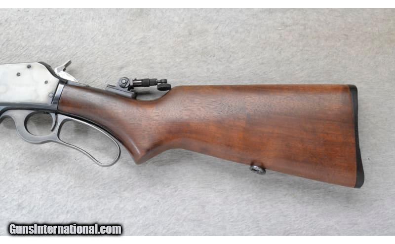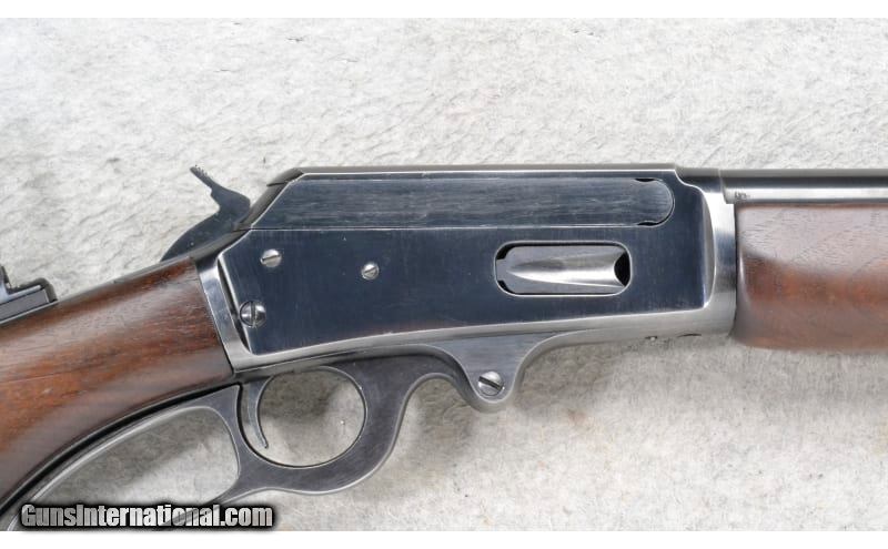 Description: This Marlin Model 36 RC is a right hand lever action repeating rifle in .30-30 Win. Cal. It has a 20 inch barrel. A blade front sight and a folding adjustable peep rear sight. The butt stock is a smooth grip walnut pistol grip. The forearm is a smooth grip walnut with a barrel band, .30-30 Winchester SOLD Chambers: Tube Magazine. Metal Condition: Has some blue wear and minor handling marks. Wood Condition: Good. Some light handling marks. Bore Condition: Excellent. Barrels: 20 inch. Stock Dimensions: LOP 13 1/4 inches. Fore End: Smooth grip walnut with a barrel band. Butt Pad: Grooved black plate. Weight: 7 lb. 0 oz. Sights: Blade front. Folding adjustable peep rear. Item Location: Richfield, WI |