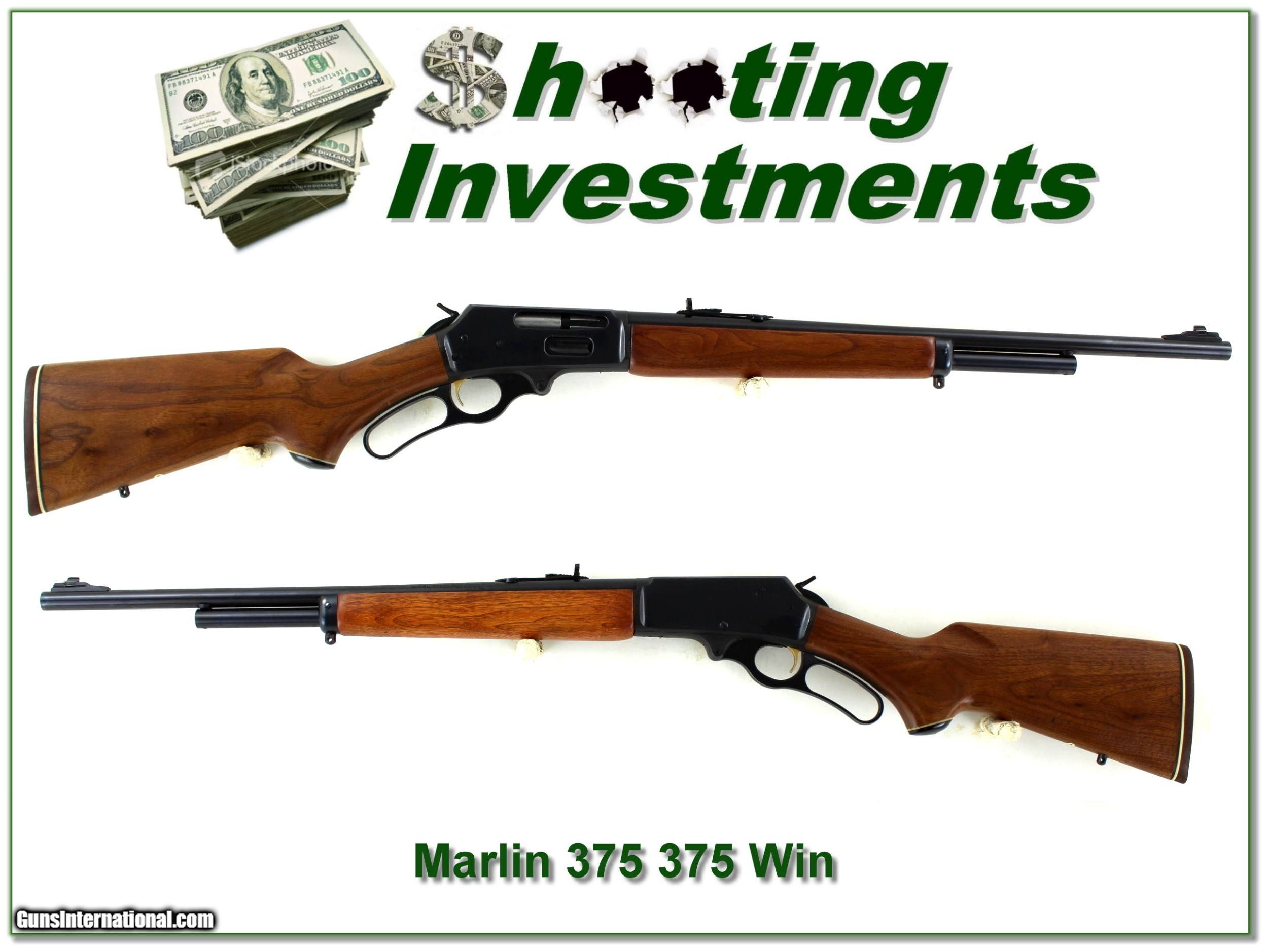 Description: This is an excellent condition Marlin 375. It was made in 1980 and is a JM marked pre-safety Marlin. It has a 20in barrel and the wood grain is much better than most. I only find a few insignificant marks on the wood. It’s a real Shooting Investment! I am selling this one on consignment and as such lay-a-way can’t be used. It does of course have the standard 3-day inspection. Shipping and insurance is $49. Please email me with any questions or larger pictures. (Consign your quality firearms with Shooting Investments for only 12%! Let me know if you have any you would like to sell!) 22-0492 Payment: Payment is by Money Order, Cashiers Check or Personal Check. I can now also accept Credit Cards (MasterCard, Visa, Discover & American Express) with a 3% convenience fee. Shipping: The shipping charge will be listed in each description. It is $49 for most long guns. Some heavy guns, over 48in boxes or those insured for over $2000 will be higher. Shipments to Alaska and Hawaii are higher because air shipment is required. Most firearms are shipped on Tuesday and Thursday and usually in 5 days of receipt of payment. We package all shipments carefully and insure them. Optics are shipped Priority Mail and most other non-firearm shipments are shipped First Class. Returns: Our return policy is simple. If for any reason you are not pleased with your purchase, you may return your item for a full refund of purchase price. Ammunition cannot be returned. It is important to us that you are happy. Guns cannot be fired or dissembled before returning them and they must be returned in the same condition as received. Notification of a return must occur with-in 3 days of receipt at your dealer. Shipping, convenience and dealer fees are not refundable and are the responsibility of the buyer. Lay-a-way: If needed, we offer a 60 day lay-a-way option on most firearms. It is 1/3 now, 1/3 in 30 days and 1/3 in 60 days. Lay-a-way firearm sales are final and if not completed the first payment cannot be returned. Consigning your firearms with Shooting Investments: We will help you get top dollar for your firearms. While most local guns shops charge 20% or more, our fee is only 12% with a minimum of $75. At your local gun shop it might take months to sell. Selling on-line provides instant access to thousands of interested buyers. You won’t find any other on-line dealer willing to sell your firearms for only 12% or listing every gun on 3 separate s. Selling through an House typically costs the seller 15% and the buyer an addition 15% (so 30%) and you have to wait several months to sell and longer to receive funds. If properly priced, we will sell your firearms in a few weeks. Send us an email or give us a call and we’ll explain how easy it is for you to get top dollar. Trading: Trading for use is really just buying your gun to re-sell. If you have a gun you want to trade, please email a picture and we will let you know what we can give or it. You will always get more if we sell it for you on consignment. Help for California Buyers: We are happy to ship to California. It is the buyer’s responsibility to make sure any item you buy is legal in your state. We are also happy to help with your purchase of a firearm from someone other than us. If you see a gun you would like to buy but the seller can’t or won’t ship to California they can ship to use and we’ll then ship it to your California dealer. The cost for this service is only $30 + shipping. Let us know if we can help! SOLD |
