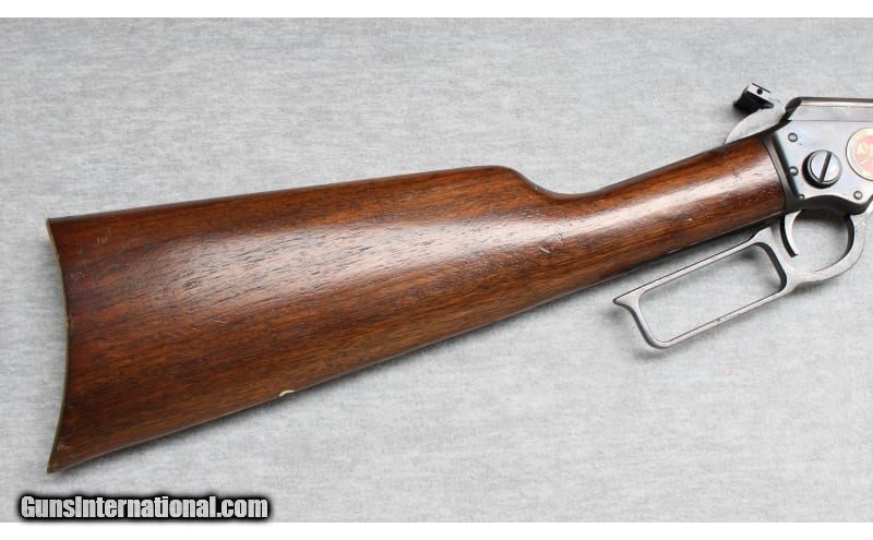 Description: Very good condition, finish wear, scratches, small nicks and few dents. Classic .22 rimfire lever action rifle with 20" octagon barrel, full length magazine tube, hardwood stock and forend. Iron sights and curved metal butt plate. A good choice for target practice, plinking or for Marlin fans and collectors. .22 Long Rifle SOLD Chambers: Lever action Metal Condition: Very good Wood Condition: Stock is very good Bore Condition: Bright Barrels: 20 Triggers: Factory Stock Dimensions: 13" LOP Fore End: Smooth Butt Pad: Curved metal butt plate Sights: Iron sights Item Location: La Vista, NE |