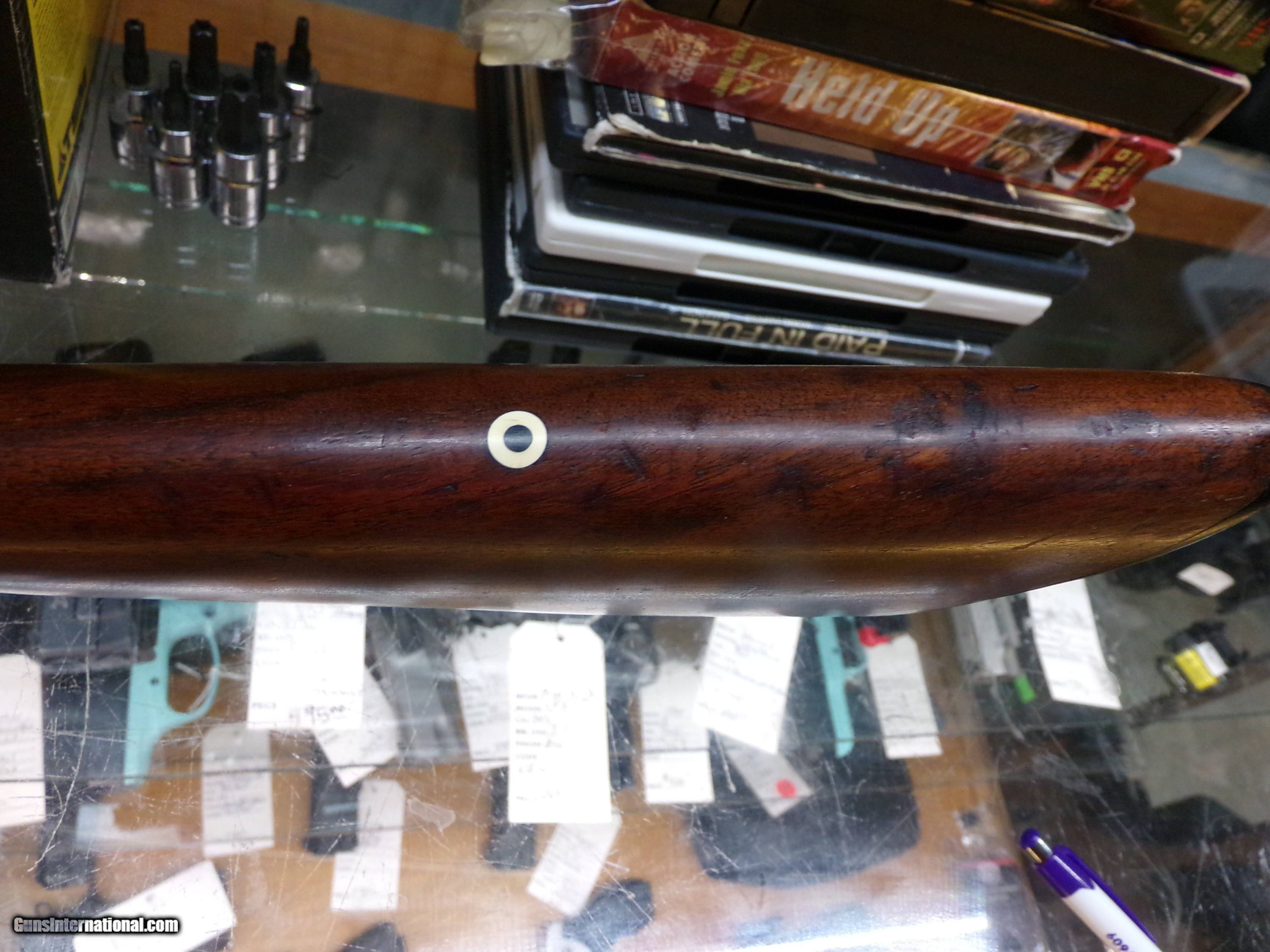Description: This is a nice old 39 lever actiion.Has octagon barrell.Has pep sights.MFG 1922-1938.Has small mark on barrel by rear sight. 40.00 S&H SOLD |