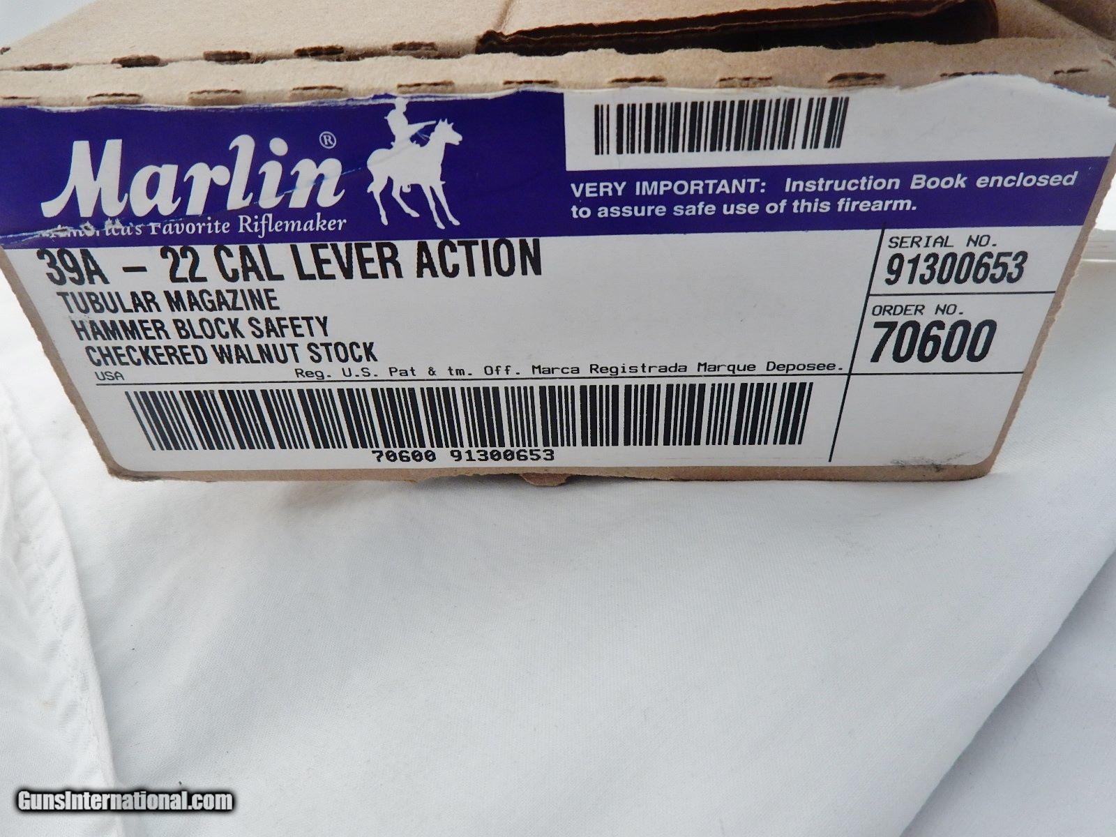 Description: This is a Marlin 39A 22 with a 24 inch barrel. This gun is 100% new in the box. Serial # is 91300xxx. Buyer pays 40.00 shipping. Thank you. 43-4-6 SOLD |