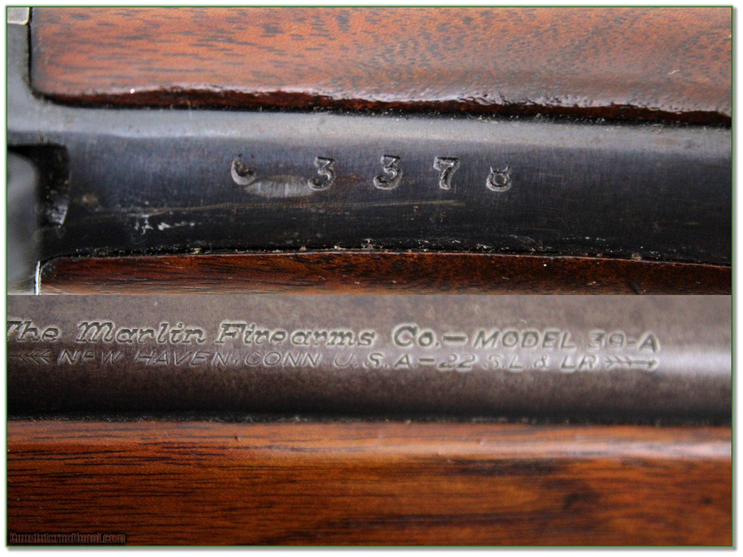 Description: Collectors and shooters, this is an early 1945 made Marlin 39A 22. It is in original condition with no sling swivels added and bullseye still in place. The blue has some thinning and patina in places. The wood looks to have had a period correct lacquer added at some point and looks excellent. Shipping and insurance is $49. Please email me with any questions or larger pictures. (Consign your quality firearms with Shooting Investments for only 12%! Let me know if you have any you would like to sell!) 22-1175 Payment: Payment is by Money Order, Cashiers Check or Personal Check. I can now also accept Credit Cards (MasterCard, Visa, Discover & American Express) with a 3% convenience fee. Shipping: The shipping charge will be listed in each description. It is $49 for most long guns. Some heavy guns, over 48in boxes or those insured for over $2000 will be higher. Shipments to Alaska and Hawaii are higher because air shipment is required. Most firearms are shipped on Tuesday and Thursday and usually in 5 days of receipt of payment. We package all shipments carefully and insure them. Optics are shipped Priority Mail and most other non-firearm shipments are shipped First Class. Returns: Our return policy is simple. If for any reason you are not pleased with your purchase, you may return your item for a full refund of purchase price. Ammunition cannot be returned. It is important to us that you are happy. Guns cannot be fired or dissembled before returning them and they must be returned in the same condition as received. Notification of a return must occur with-in 3 days of receipt at your dealer. Shipping, convenience and dealer fees are not refundable and are the responsibility of the buyer. Lay-a-way: If needed, we offer a 60 day lay-a-way option on most firearms. It is 1/3 now, 1/3 in 30 days and 1/3 in 60 days. Lay-a-way firearm sales are final and if not completed the first payment cannot be returned. Consigning your firearms with Shooting Investments: We will help you get top dollar for your firearms. While most local guns shops charge 20% or more, our fee is only 12% with a minimum of $75. At your local gun shop it might take months to sell. Selling on-line provides instant access to thousands of interested buyers. You won’t find any other on-line dealer willing to sell your firearms for only 12% or listing every gun on 3 separate s. Selling through an House typically costs the seller 15% and the buyer an addition 15% (so 30%) and you have to wait several months to sell and longer to receive funds. If properly priced, we will sell your firearms in a few weeks. Send us an email or give us a call and we’ll explain how easy it is for you to get top dollar. Trading: Trading for use is really just buying your gun to re-sell. If you have a gun you want to trade, please email a picture and we will let you know what we can give or it. You will always get more if we sell it for you on consignment. Help for California Buyers: We are happy to ship to California. It is the buyer’s responsibility to make sure any item you buy is legal in your state. We are also happy to help with your purchase of a firearm from someone other than us. If you see a gun you would like to buy but the seller can’t or won’t ship to California they can ship to use and we’ll then ship it to your California dealer. The cost for this service is only $30 + shipping. Let us know if we can help! SOLD |