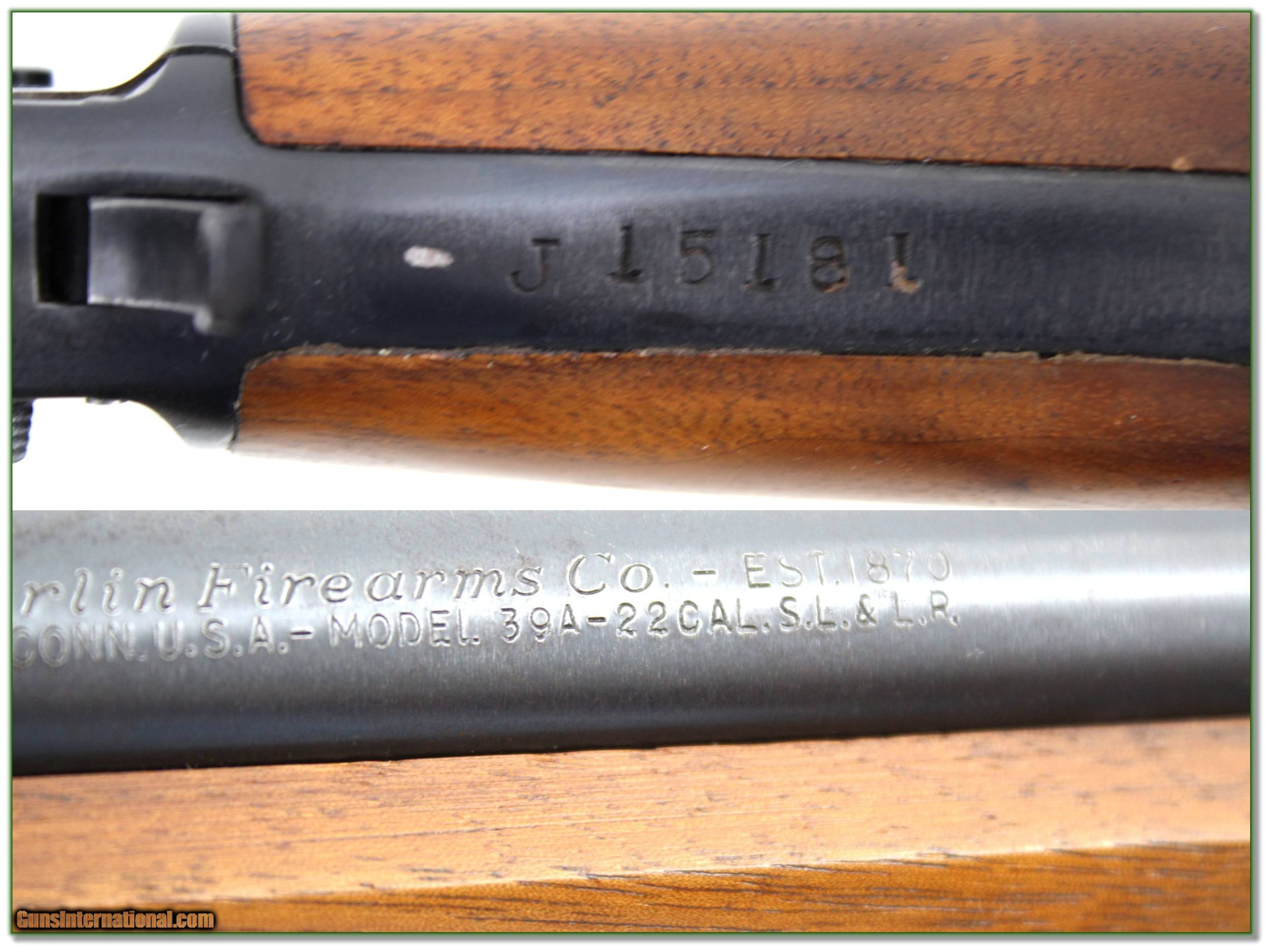 Description: Collectors and shooters, this is an excellent condition 1952 made Marlin 39A 22. It is all original with no sling studs ever added. It is of course JM marked. I find only a few minor marks on the wood. Also note the bullseye is missing but will be easy to add one back. Shipping and insurance is $39. Please email me with any questions or larger pictures. (Consign your quality firearms with Shooting Investments for only 12%! Let me know if you have any you would like to sell!) 21-1711 Payment: Payment is by Money Order, Cashiers Check or Personal Check. I can now also accept Credit Cards (MasterCard, Visa, Discover & American Express) with a 3% convenience fee. Shipping: The shipping charge will be listed in each description. It is $39 for most firearms. Some heavy guns or those insured for over $2000 will be higher. Shipments to Alaska and Hawaii are higher because air shipment is required. Most firearms are shipped on Tuesday and Thursday and usually in 5 days of receipt of payment. We package all shipments carefully and insure them. Optics are shipped Priority Mail and most other non-firearm shipments are shipped First Class. Returns: Our return policy is simple. If for any reason you are not pleased with your purchase, you may return your item for a full refund of purchase price. Ammunition cannot be returned. It is important to us that you are happy. Guns cannot be fired or dissembled before returning them and they must be returned in the same condition as received. Notification of a return must occur with-in 3 days of receipt at your dealer. Shipping, convenience and dealer fees are not refundable and are the responsibility of the buyer. Lay-a-way: If needed, we offer a 60 day lay-a-way option on most firearms. It is 1/3 now, 1/3 in 30 days and 1/3 in 60 days. Lay-a-way firearm sales are final and if not completed the first payment cannot be returned. Consigning your firearms with Shooting Investments: We will help you get top dollar for your firearms. While most local guns shops charge 20% or more, our fee is only 12% with a minimum of $75. At your local gun shop it might take months to sell. Selling on-line provides instant access to thousands of interested buyers. You won’t find any other on-line dealer willing to sell your firearms for only 12% or listing every gun on 3 separate s. Selling through an House typically costs the seller 15% and the buyer an addition 15% (so 30%) and you have to wait several months to sell and longer to receive funds. If properly priced, we will sell your firearms in a few weeks. Send us an email or give us a call and we’ll explain how easy it is for you to get top dollar. Trading: Trading for use is really just buying your gun to re-sell. If you have a gun you want to trade, please email a picture and we will let you know what we can give or it. You will always get more if we sell it for you on consignment. Help for California Buyers: We are happy to ship to California. It is the buyer’s responsibility to make sure any item you buy is legal in your state. We are also happy to help with your purchase of a firearm from someone other than us. If you see a gun you would like to buy but the seller can’t or won’t ship to California they can ship to use and we’ll then ship it to your California dealer. The cost for this service is only $30 + shipping. Let us know if we can help! SOLD |