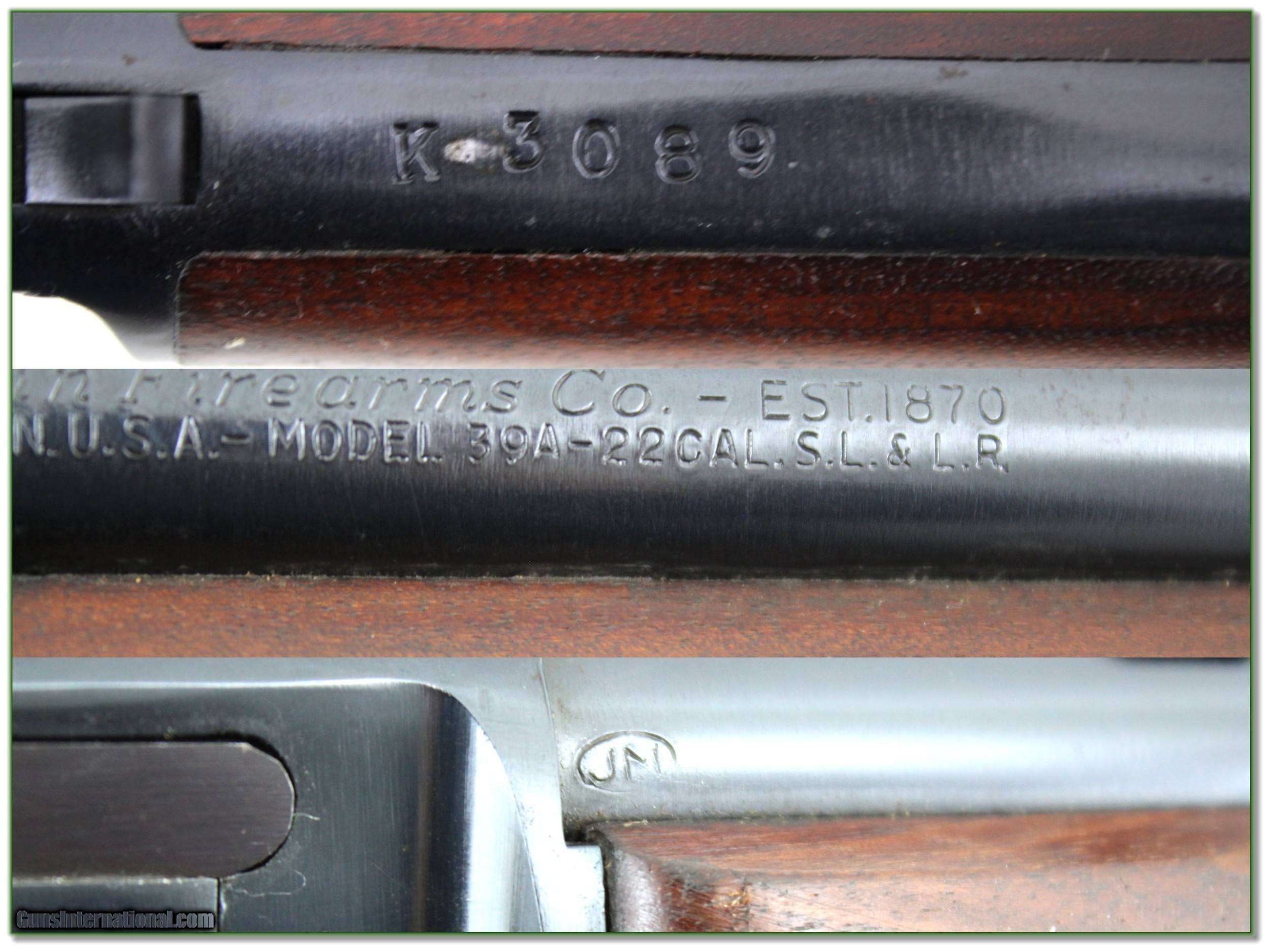 Description: Collectors and shooters, this is an excellent condition 1953 made Marlin 39A 22. It is all original with no sling studs ever added. It is of course JM marked. I find only a few minor marks on the wood. Shipping and insurance is $39. Please email me with any questions or larger pictures. (Consign your quality firearms with Shooting Investments for only 12%! Let me know if you have any you would like to sell!) 21-1734 Payment: Payment is by Money Order, Cashiers Check or Personal Check. I can now also accept Credit Cards (MasterCard, Visa, Discover & American Express) with a 3% convenience fee. Shipping: The shipping charge will be listed in each description. It is $39 for most firearms. Some heavy guns or those insured for over $2000 will be higher. Shipments to Alaska and Hawaii are higher because air shipment is required. Most firearms are shipped on Tuesday and Thursday and usually in 5 days of receipt of payment. We package all shipments carefully and insure them. Optics are shipped Priority Mail and most other non-firearm shipments are shipped First Class. Returns: Our return policy is simple. If for any reason you are not pleased with your purchase, you may return your item for a full refund of purchase price. Ammunition cannot be returned. It is important to us that you are happy. Guns cannot be fired or dissembled before returning them and they must be returned in the same condition as received. Notification of a return must occur with-in 3 days of receipt at your dealer. Shipping, convenience and dealer fees are not refundable and are the responsibility of the buyer. Lay-a-way: If needed, we offer a 60 day lay-a-way option on most firearms. It is 1/3 now, 1/3 in 30 days and 1/3 in 60 days. Lay-a-way firearm sales are final and if not completed the first payment cannot be returned. Consigning your firearms with Shooting Investments: We will help you get top dollar for your firearms. While most local guns shops charge 20% or more, our fee is only 12% with a minimum of $75. At your local gun shop it might take months to sell. Selling on-line provides instant access to thousands of interested buyers. You won’t find any other on-line dealer willing to sell your firearms for only 12% or listing every gun on 3 separate s. Selling through an House typically costs the seller 15% and the buyer an addition 15% (so 30%) and you have to wait several months to sell and longer to receive funds. If properly priced, we will sell your firearms in a few weeks. Send us an email or give us a call and we’ll explain how easy it is for you to get top dollar. Trading: Trading for use is really just buying your gun to re-sell. If you have a gun you want to trade, please email a picture and we will let you know what we can give or it. You will always get more if we sell it for you on consignment. Help for California Buyers: We are happy to ship to California. It is the buyer’s responsibility to make sure any item you buy is legal in your state. We are also happy to help with your purchase of a firearm from someone other than us. If you see a gun you would like to buy but the seller can’t or won’t ship to California they can ship to use and we’ll then ship it to your California dealer. The cost for this service is only $30 + shipping. Let us know if we can help! SOLD |