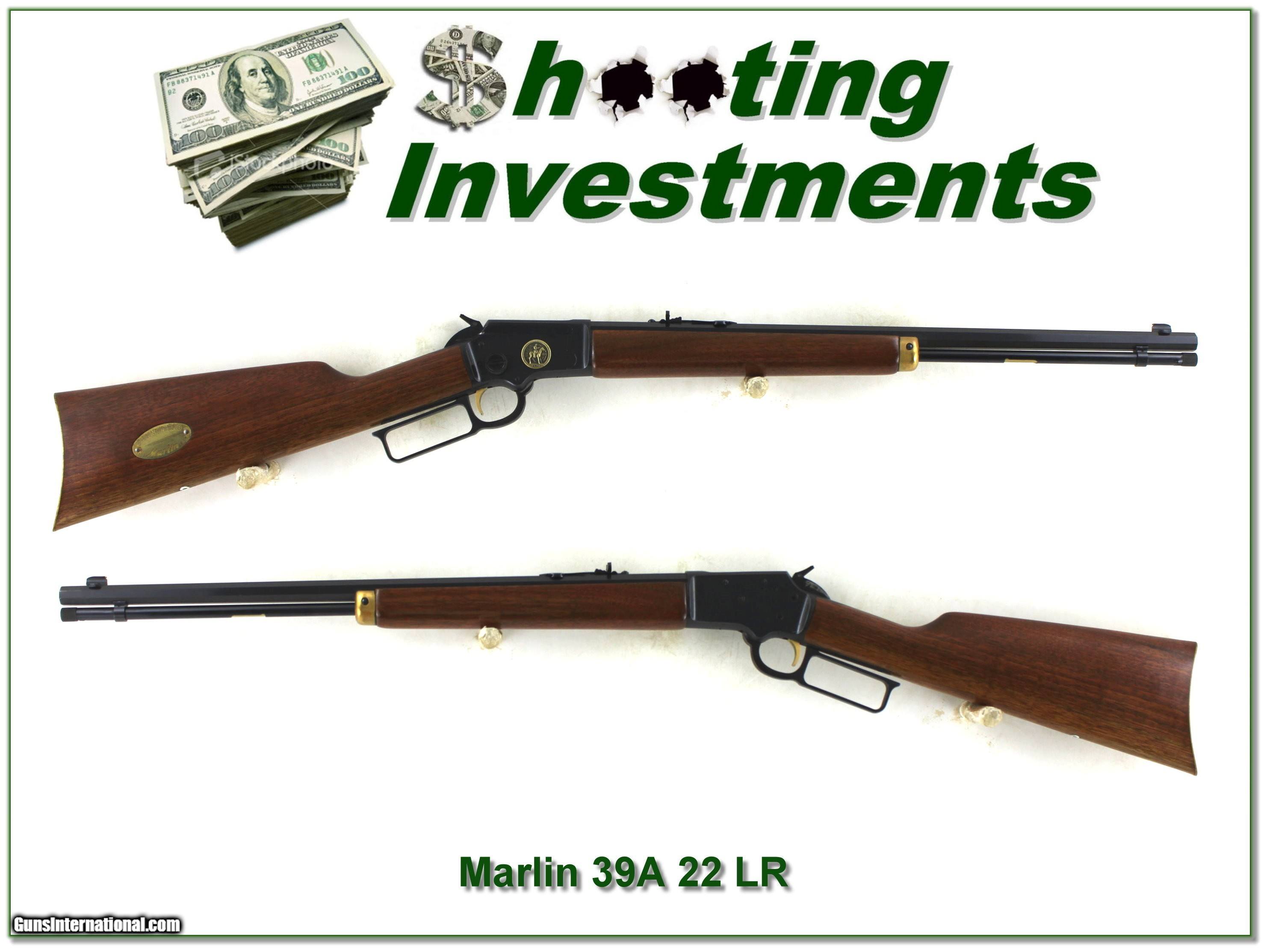 Description: Shooters and collectors, this is a 1970 made Marlin 39A. It is the Century Limited model commemorating 100 years of Marlin with a straight stock and octagonal barrel. This one is of course JM Marked and a pre-safety 39A. It is in excellent condition. I find no wear on the blue and only a few minor marks on the wood! Shipping and insurance is $49. Please email me with any questions or larger pictures. (Consign your quality firearms with Shooting Investments for only 12%! Let me know if you have any you would like to sell!) 25-0381 Payment: Payment is by Money Order, Cashier’s Check or Personal Check. I can now also accept Credit Cards (MasterCard, Visa, Discover & American Express) with a 3% convenience fee. Shipping: The shipping charge will be listed in each description. It is $49 for most firearms. Some heavy guns or those insured for over $2000 will be higher. Shipments to Alaska and Hawaii are higher because air shipment is required. Most firearms are shipped on Tuesday and Thursday and usually in 5 days of receipt of payment. We package all shipments carefully and insure them. Optics are shipped Priority Mail and most other non-firearm shipments are shipped First Class. Returns: Our return policy is simple. If for any reason you are not pleased with your purchase, you may return your item for a full refund of purchase price. Ammunition cannot be returned. It is important to us that you are happy. Guns cannot be fired or dissembled before returning them and they must be returned in the same condition as received. Notification of a return must occur within 3 days of receipt at your dealer. Shipping, convenience and dealer fees are not refundable and are the responsibility of the buyer. Lay-a-way: If needed, we offer a 60 day lay-a-way option on most firearms. It is 1/3 now, 1/3 in 30 days and 1/3 in 60 days. Lay-a-way firearm sales are final and cannot be returned. If a lay-a-way is not completed the first payment cannot be refunded. Consigning your firearms with Shooting Investments: We will help you get top dollar for your firearms. While most local guns shops charge 20% or more, our fee is only 12% with a minimum of $100. At your local gun shop it might take months to sell. Selling on-line provides instant access to thousands of interested buyers. You won’t find any other on-line dealer willing to sell your firearms for only 12% or listing every gun on 3 separate s. Selling through an House typically costs the seller 15% and the buyer an addition 15% (so 30%) and you have to wait several months to sell and longer to receive funds. If properly priced, we will sell your firearms within a few weeks. Send us an email or give us a call and we’ll explain how easy it is for you to get top dollar. Trading: Trading for us is really just buying your gun to re-sell. If you have a gun you want to trade, please email a picture and we will let you know what we can give for it. You will always get more if we sell it for you on consignment. SOLD |
