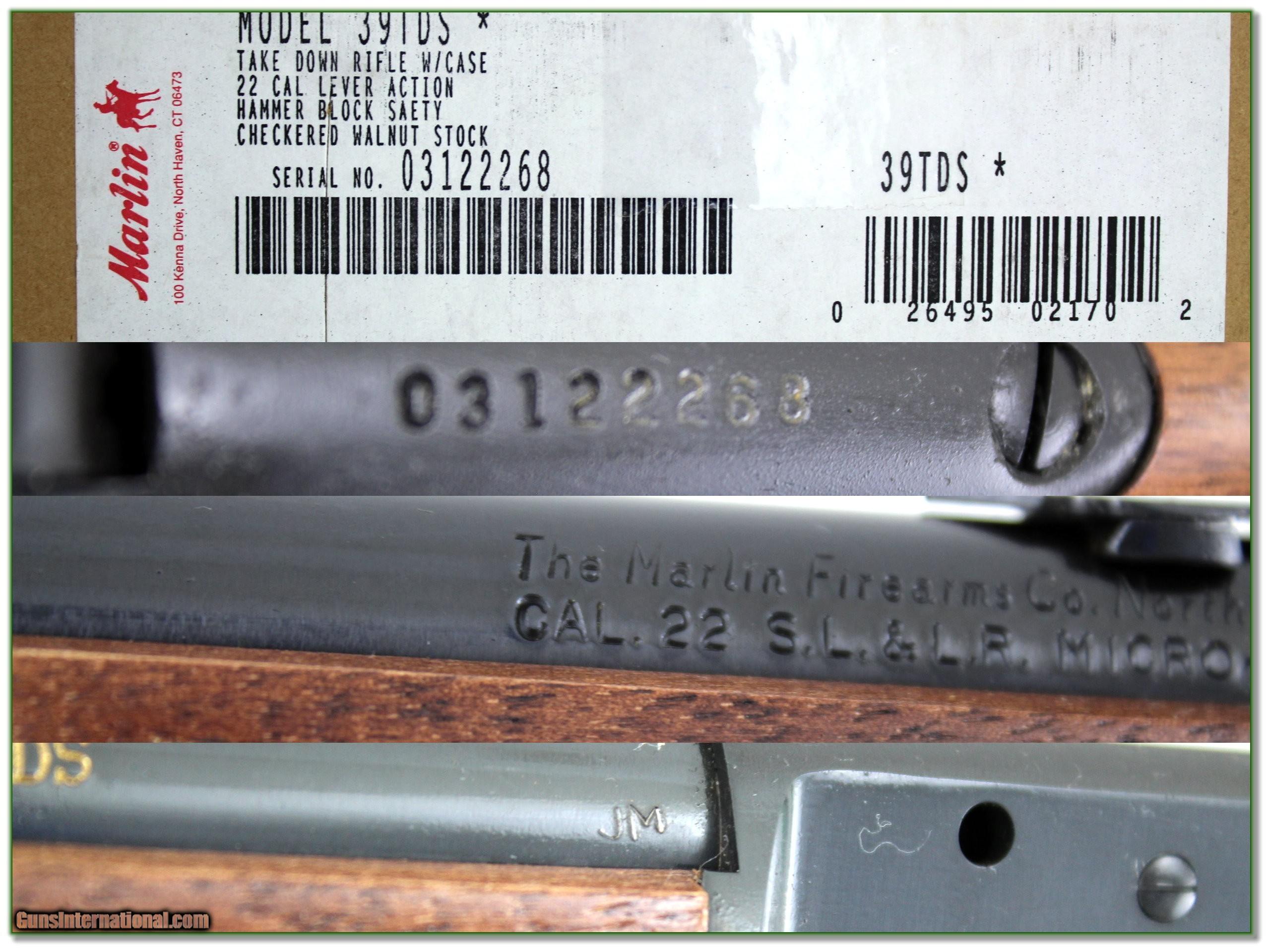 Marlin 39TDS JM Marked 22 new and unfired in box with case and papers
