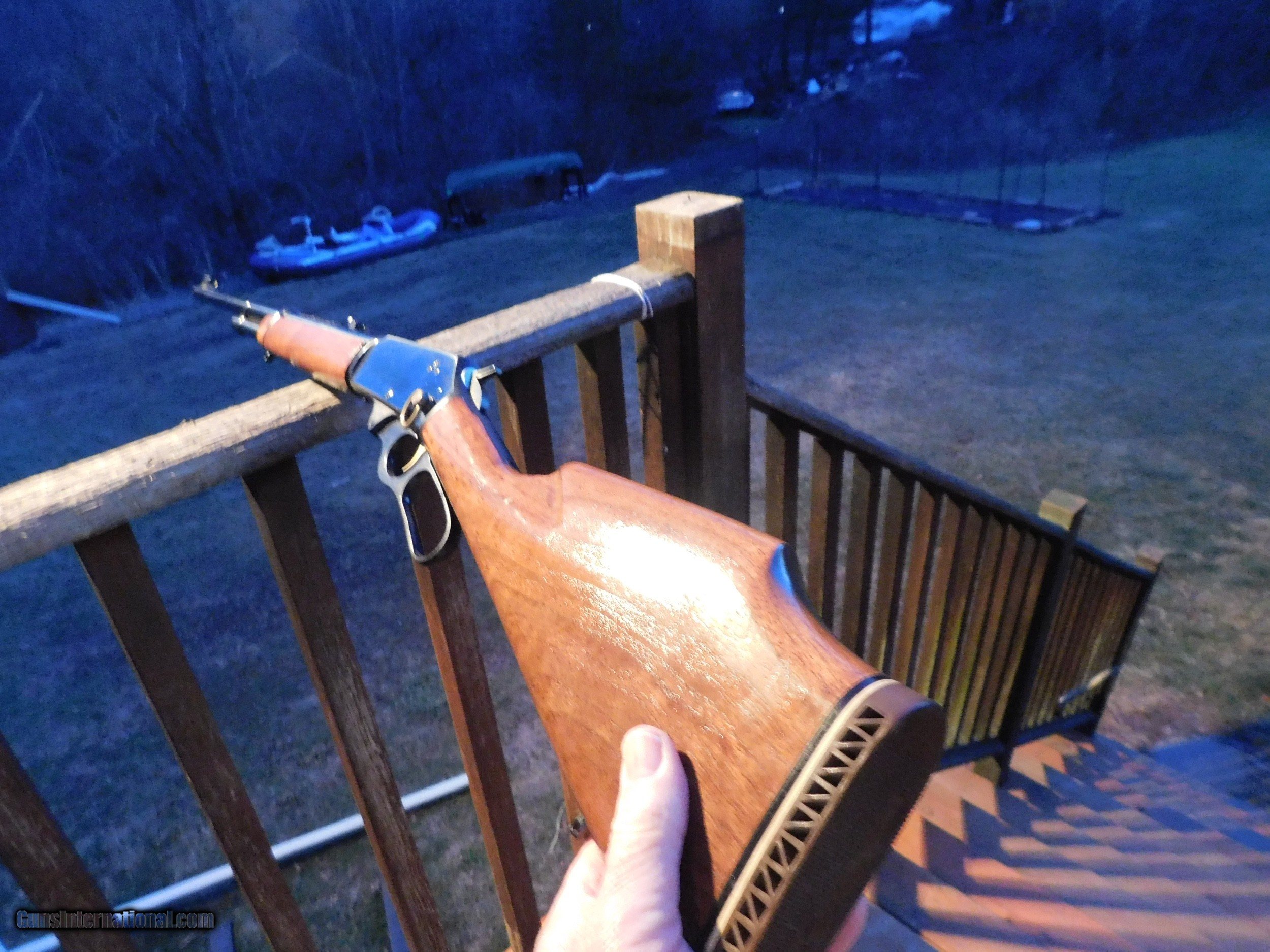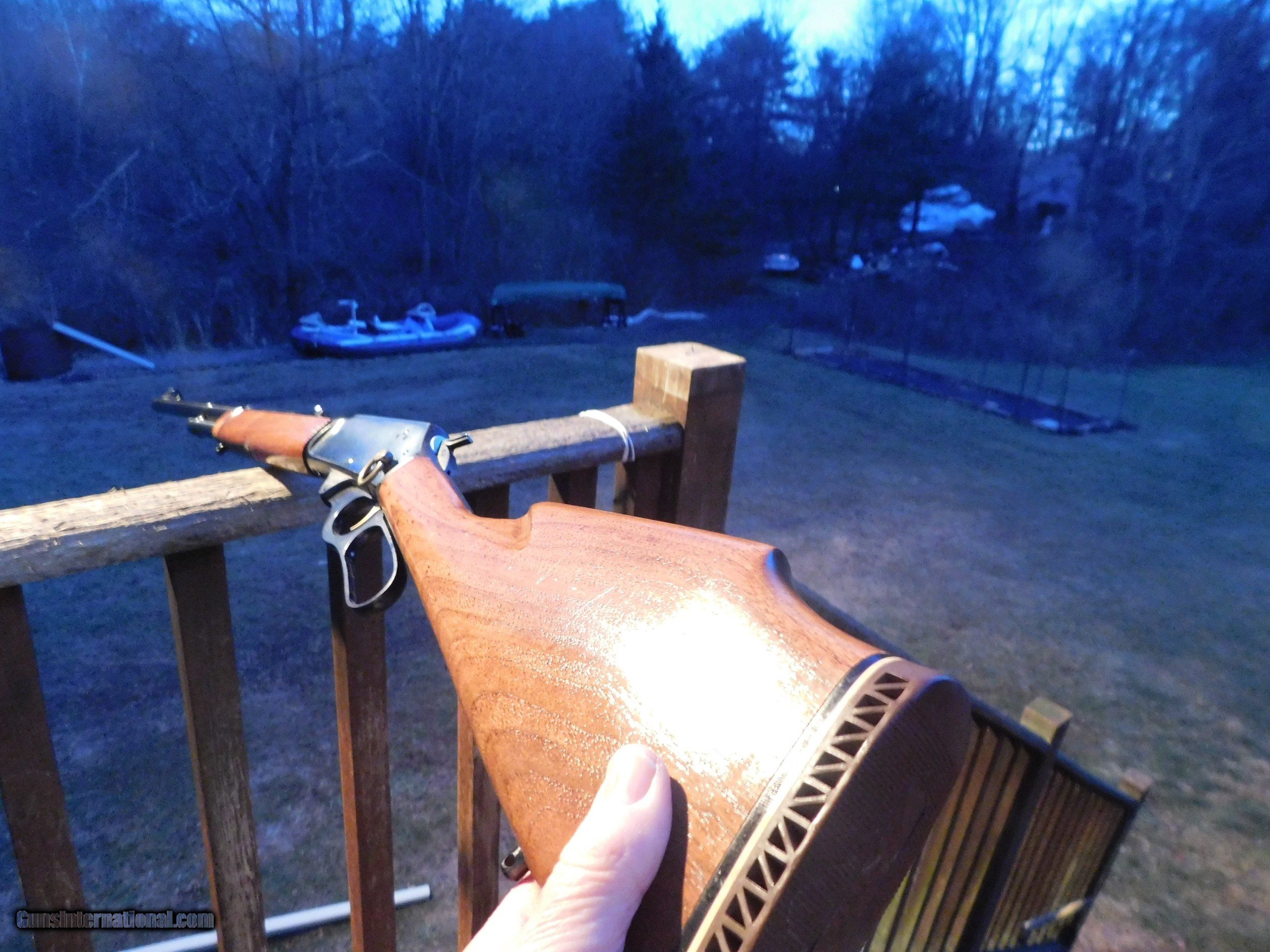 Description: SALE PENDING RANDY G. MT. 1/4/23 If you've been waiting for an excellent original lst variation from the 1960's this is it. Thsee with 24" barrel, half mag, and factory monte carlos comb are by far our favorites. Capable as a moose, deer elk or bear round in a fast shooting handsome lever gun. This gun still has the site hood, folding rear site and the Marlin signature Bullseye in the butt stock (often as these stocks dry and shrink with age the bullseye as a plastic is inert and falls out but this one remains in place. These are now usually offered for hundreds more than out price (speaking of this early model only) when in this condtion 90 % (metal at near 100, wood has some handling evidence and rated at or near 90) Shipping is $ 59.00 PLEASE READ EVERYTHING BELOW IN BOLD: IF IT DOES NOT SAY ."SALE PENDING, UNDER DEPOSIT or ON HOLD"...IT IS AVAILABLE. WE DO NOT REPLY TO INQUIRIES THAT SAY "INTERESTED IN THIS GUN" OR "IS IT AVAILABLE" IF YOU WOULD LIKE TO BUY THIS OR ANY OF OUR GUNS WE SUGGEST YOU PHONE US; WE ARE OFTEN AVAIALABLE LONG HOURS. IF YOU ARE INTERSTED IN A GUN THAT IS UNDER DEPOSIT AND WOULD LIKE TO BE NOTIFIED IF A SIMILAR GUN COMES IN DROP US A LINE AND WE WILL MAKE EFFORTS TO CONTACT YOU WHEN ONE DOES COME IN. WE HAVE OVER 2000 SALES ON ALL SITES WITH AN A+ RATING ON ALL WE ALSO KEEP AN INVENTORY OF OLDER PERIOD CORRECT SCOPES; CALL WITH NEEDS WE MOSTLY PICK VERY CLEAN AND LIGHLTY USED GUNS. WE ARE HAPPY TO TAKE CONSIGNMENT GUNS AND COLLECTIONS OR WILL BUY YOURS OUTRIGHT. WE SOMETIMES ARE EMPLOYED FOR ESTATE PURPOSES AND VALUATIONS. CT RESIDENTS MUST CONTACT US TO UNDERSTAND OUR IN STATE TRANSFER POLICIES. PAYMENT USPS MONEY ORDER ONLY AT THIS TIME. ( WE CAN TAKE A DEPOSIT WITH A CARD BUT THE GUN MUST BE PAID WITH A USPS MONEY ORDER) IT IS THE BUYERS RESPONSIBILITY TO GET US A COPY OF YOUR RECEIVING FFL'S LIC AND A COPY OF YOUR PHOTO ID BEFORE THE GUN SHIPS YOU MUST CALL OR CONTACT YOUR FFL.WE DO NOT CALL FOR YOU UNLESS THEY RQUIRE IT. LAYAWAY PURCHASES NOT COMPLETED ON ANY RETURNED ITEM UNLESS NOT AS DESCRIBED OR DAMAGED ARE SUBJECT TO A 10% RELISTING/RESTOCKING FEE AND MUST BE RETURNED WITH NO NEW MARKS OR SCRATCHES, SENT BACK INSURED, PRIORITY SIGNATURE REQUIRED. ALL INFORMATION CONTAINED HEREIN IS BELIEVED TO BE ACCURATE BUT IS NOT GUARANTEED. WITH ANY OLDER OR USED GUN IT SHOULD BE INSPECTED BY A GUNSMITH PRIOR TO SHOOTING. SOLD |