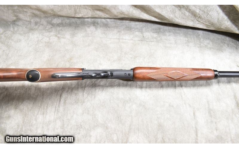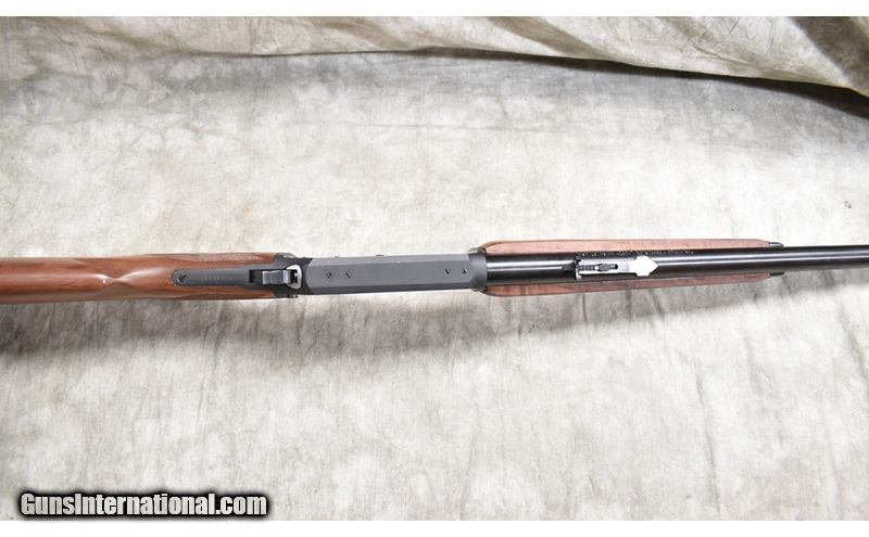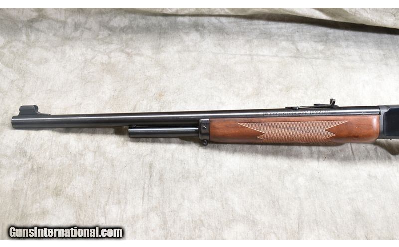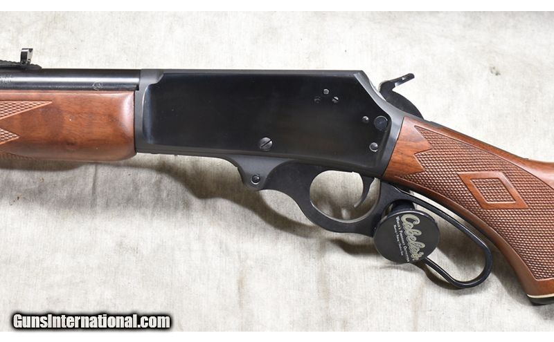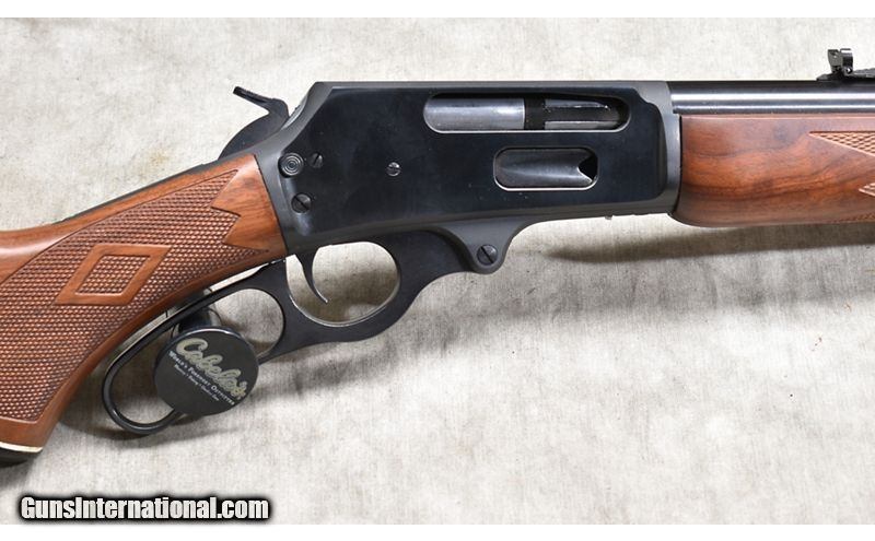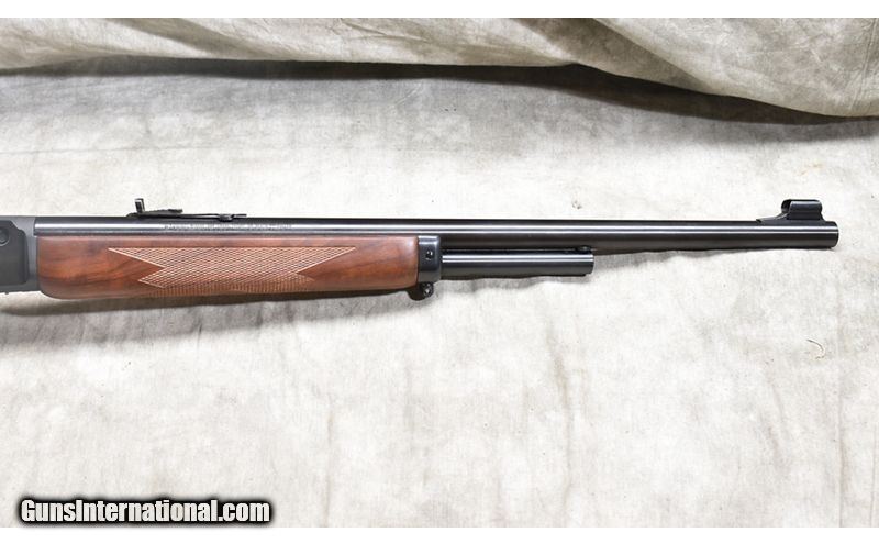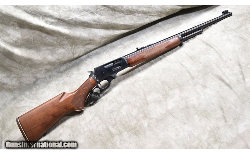Description: Featuring .444 Marlin chambering, this big-bore version of the Marlin 336 will serve as a stopped for almost any hunt. This one has "iron" sights, cross-bolt safety, Micro-groove rifling and walnut stock. SOLD Chambers: 4 Metal Condition: Excellent. Wood Condition: Excellent. Bore Condition: Shiny and bright. Barrels: 24-inch Triggers: Factory trigger. Stock Dimensions: 13-3/4 inch LOP. Fore End: Matching walnut. Butt Pad: Rubber pad. Weight: 7 lb - 11 oz Sights: Hooded bead and semi-buckhorn open sights. Drilled and tapped for scope. Item Location: Rogers |