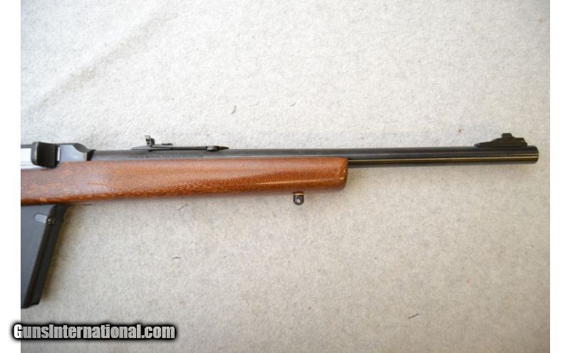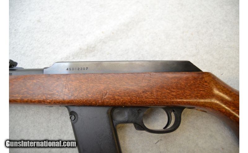 Description: Overall condition of this rifle is good to very good. The metal is in great shape, with some minor handling marks near the muzzle and some finish thinning on the hard edges of the receiver. The stock is in pretty good condition as well with only a few minor scratches and handling marks. The bore is in fantastic shape with a healthy and proper shine with strong, well-defined lands/grooves. SOLD Caliber Info: .45 ACP Chambers: Semi-automatic fed from detachable magazines. Metal Condition: Good. Wood Condition: Good. Bore Condition: Excellent. Barrels: 16 1/2" Blued. Triggers: Wide blued metal with smooth surface. Stock: Plain wood stock. Stock Dimensions: 14" LOP Fore End: Plain wood stock. Butt Pad: Brown rubber pad with the Marlin "Cowboy" logo. Weight: 6lbs 14oz Sights: Brass front blade and flat top rear leaf. Rifle is also drilled & tapped. Extras: A single magazine marked "MARLIN CAL .45 AUTO" is included. Item Location: Green Bay, WI |