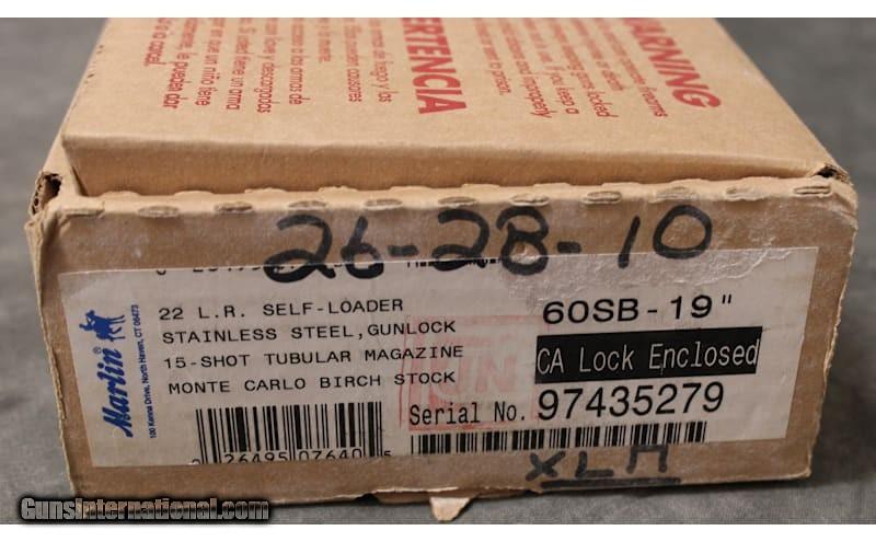 Description: Marlin 60SB 22LR New in Box. .22 Long Rifle SOLD Metal Condition: Excellent Wood Condition: Excellent Bore Condition: Bright & Shiny Barrels: 19 Item Location: Auburn Hills, MI |