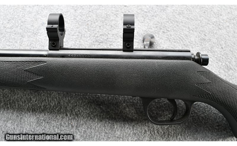 Description: Very good condition with some handling and use marks. Rear sight has been removed for a scope. .22 Short/Long/Long Rifle Metal Condition: Very good Bore Condition: Very good Barrels: 22 Stock Dimensions: 13.25" LOP Fore End: Checkered synthetic Butt Pad: Integral Weight: 6lbs Sights: "Scope rings, front blade Item Location: Grand Junction, CO Price: $159.99 Contact Seller |