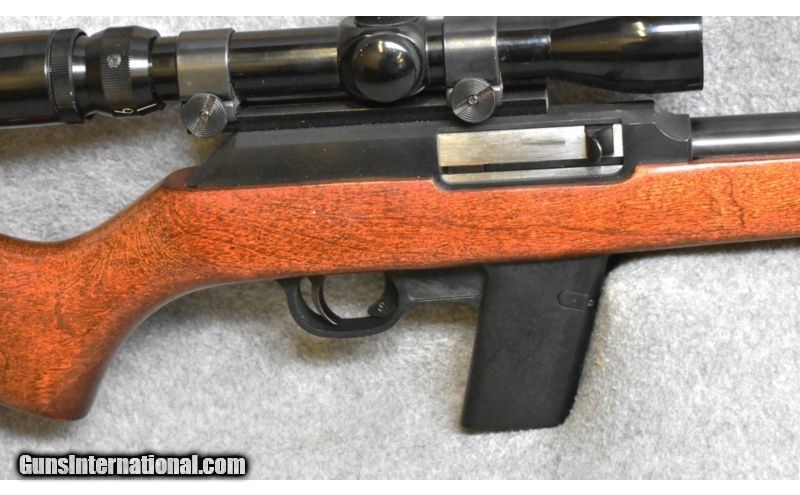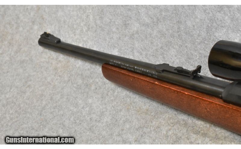 Description: Marlin model 9 "Camp Carbine" with Bushnell 3-9 banner scope with duplex reticle, Weaver base and rings. SOLD Caliber Info: 9mm. Metal Condition: Excellent, couple of minor handling marks. Wood Condition: Excellent, minor handling marks. Bore Condition: Near excellent bore. Barrels: 16 1/2 inch. Triggers: Single curved trigger. Stock: Hardwood, smooth, semi pistol grip style. Stock Dimensions: 14 inch LOP. Fore End: Straight, smooth, hardwood. Butt Pad: Original Marlin recoil pad. Weight: 7 lbs 9 oz. Sights: Ramp front dovetail bead sight, adjustable rear, Bushnell 3-9 banner scope. Extras: Comes with Marlin marked magazine. Item Location: Kansas City, KS |