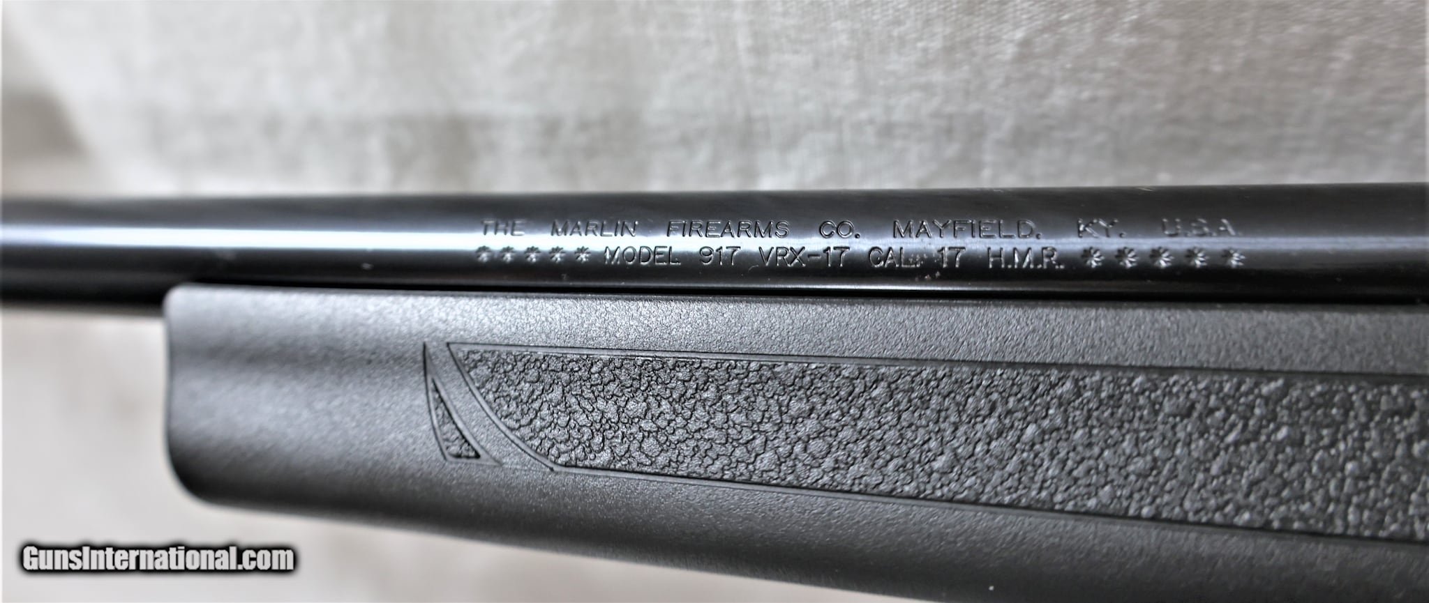 Description: Guns Listing ID: 856367 This firearm is in \"like new\" condition. It is very clean and has been well cared for. This is the perfect gun for small game or plinking. Firearm as pictured, no box or other accessories. Chambered for the 17HMR, the Model 917VRX bolt action zips a high-performance polymer-tipped bullet downrange at 2,500+ feet per second - that‚‚s 25% more velocity than the 22 Win. Mag for devastating on-game performance with a laser-flat trajectory. The rock-solid, super-accurate VRX (same as the Model 917V) features a heavy 22\" barrel, double bedding screws and special in letting to enhance stability and shot-to-shot consistency. The Pro-Fire adjustable trigger system produces an extremely consistent trigger pull with an ultra-clean break. Included is a 7-shot clip magazine. It has a weather resistant black synthetic stock, and the receiver is drilled and tapped and grooved for your choice of convenient scope mounting SOLD Manufacturer: MARLIN Model: 917 VRX-17 Caliber Info: .17 HMR Condition: Used - Non-Certified Barrels: 22 BARREL Finish: BLUE AND BLACK |