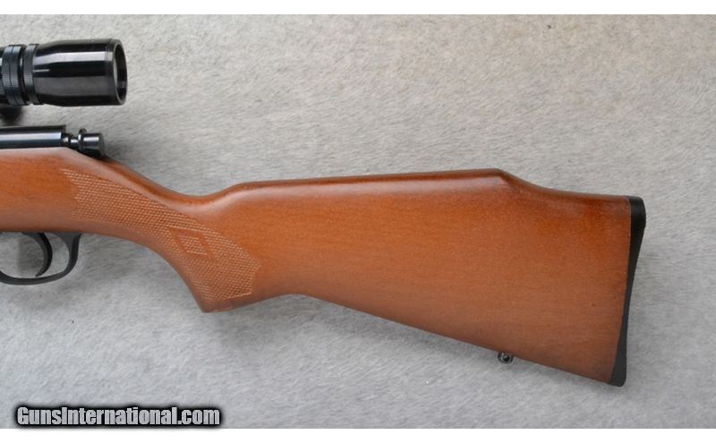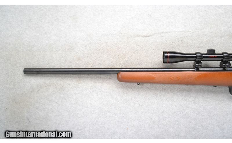 Description: This Marlin Model 917M2 is a right hand bolt action rifle in .17 Mach 2 Cal. It has a 22 inch heavy target barrel. It is outfitted with a Simmons 3-9x32 Scope. No iron sights. The butt stock is a diamond checkered grip hardwood pistol grip. The forearm is a diamond checkered grip hardwood. SOLD Chambers: 7 round magazine. Metal Condition: Excellent. Wood Condition: Excellent. Bore Condition: Excellent. Barrels: 22 inch heavy target barrel. Stock Dimensions: LOP 13 1/2 inches. Fore End: Diamond checkered grip hardwood. Butt Pad: Marlin checkered black plate. Weight: 7 lb. 4 oz. Sights: Simmons 3-9x32 Scope. No iron sights. Item Location: Richfield, WI |