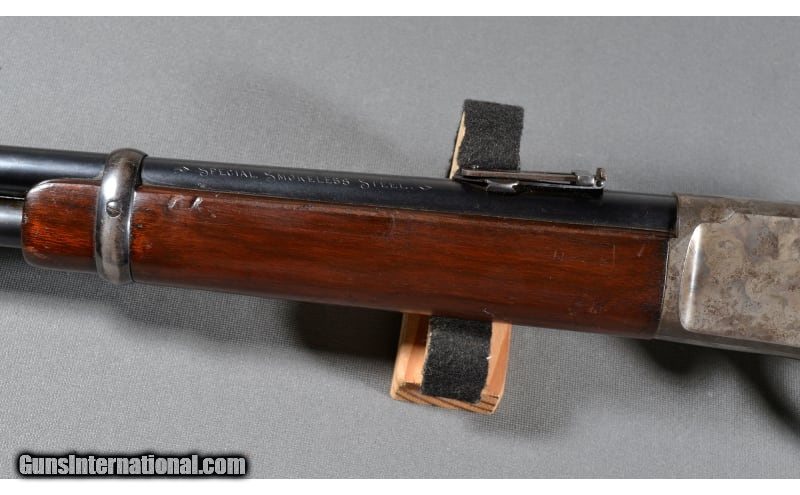 Description: A Marlin model 93 chambered in .30-.30, case-hardened receiver, saddle ring carbine with a branded smokeless marked barrel. Furniture has some scratches and nicks, the metals look fine, with some freckling on the case-hardening. .30-30 Winchester SOLD Barrels: 20 Inches Item Location: Lacey, WA |