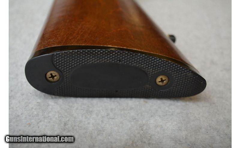 Description: Good shape overall. The metal has some tiny specs near the rear sight, but they can only barely be felt. There appears to be some residue or marks from where the bases used to be. The furniture has a few light scratches. The worst is the curving line on the right side of the fore end. .30-30 Winchester SOLD Chambers: Lever action fed from a tubular magazine. Metal Condition: Good. Wood Condition: Good. Bore Condition: Excellent. Barrels: 20" Blued. Triggers: """Gold"" plated metal with smooth face. Stock Dimensions: Smooth hardwood with 13½" LOP. Butt Pad: Black plastic plate. Weight: 7lbs Sights: Front blade with brass bead and elevation adjustable rear notch. Receiver has been drilled and tapped. Chokes: N/A Item Location: Green Bay |