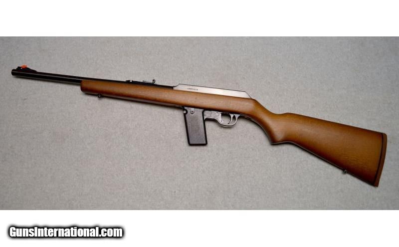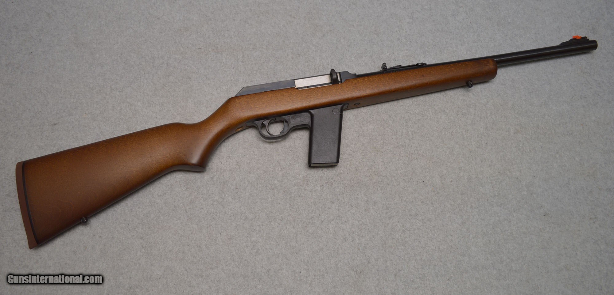 Description: Very nice pre-owned Marlin Camp 45. The Marlin Camp .45, also known as the Marlin Model 45, is a discontinued semi-automatic pistol-caliber carbine that was produced from 1986 to 1999. Designed for utility use around hunting camps and for foraging or defense, the Camp .45 is a popular collector's item today. .45 Auto SOLD Barrels: 16 inches Weight: 6.5 lbs Item Location: Avon, OH |