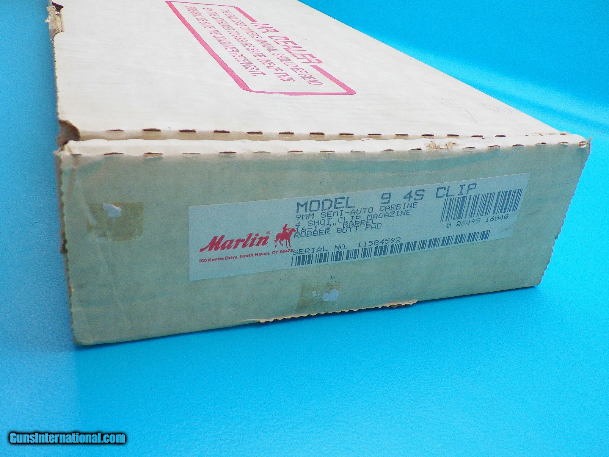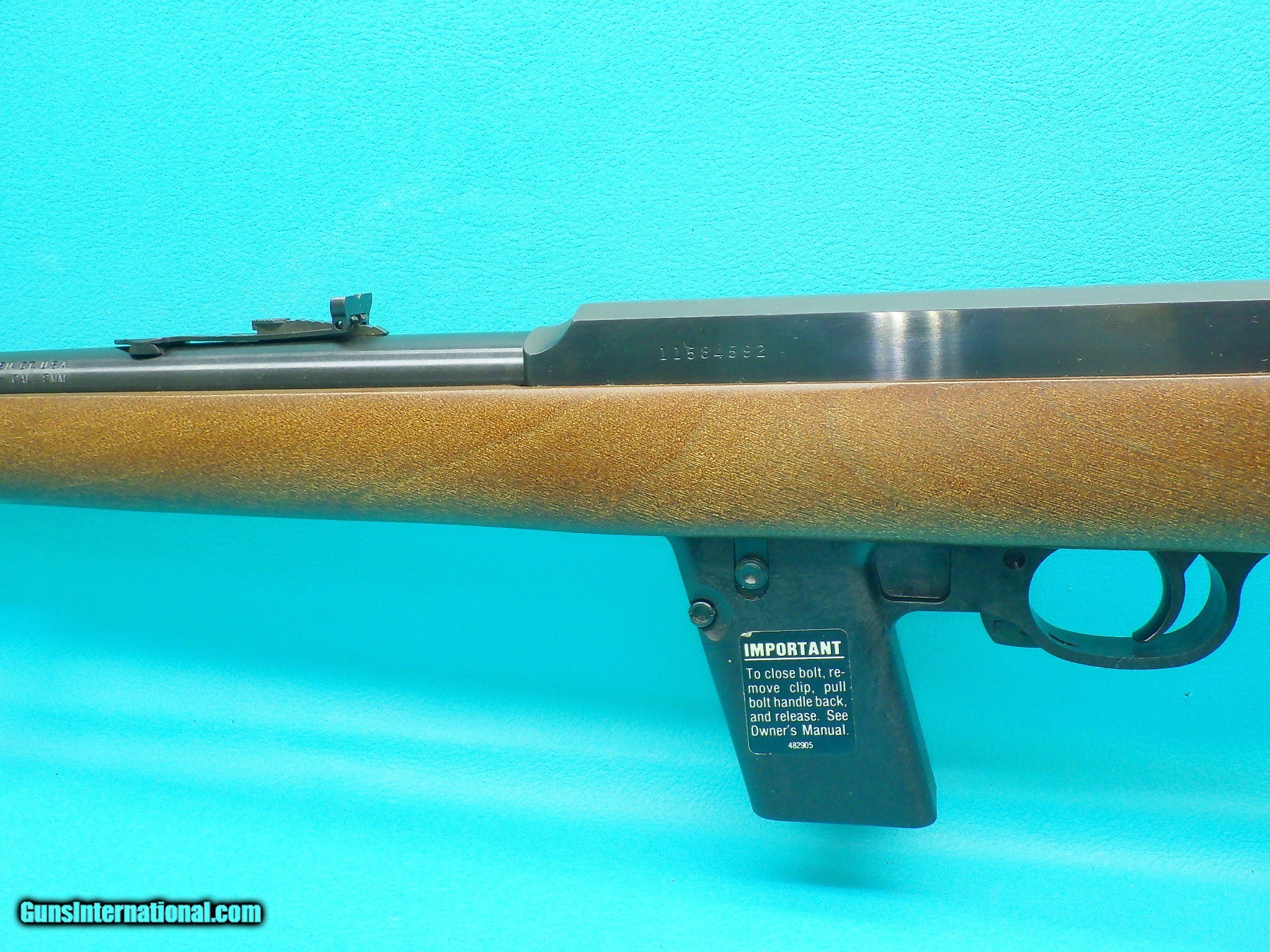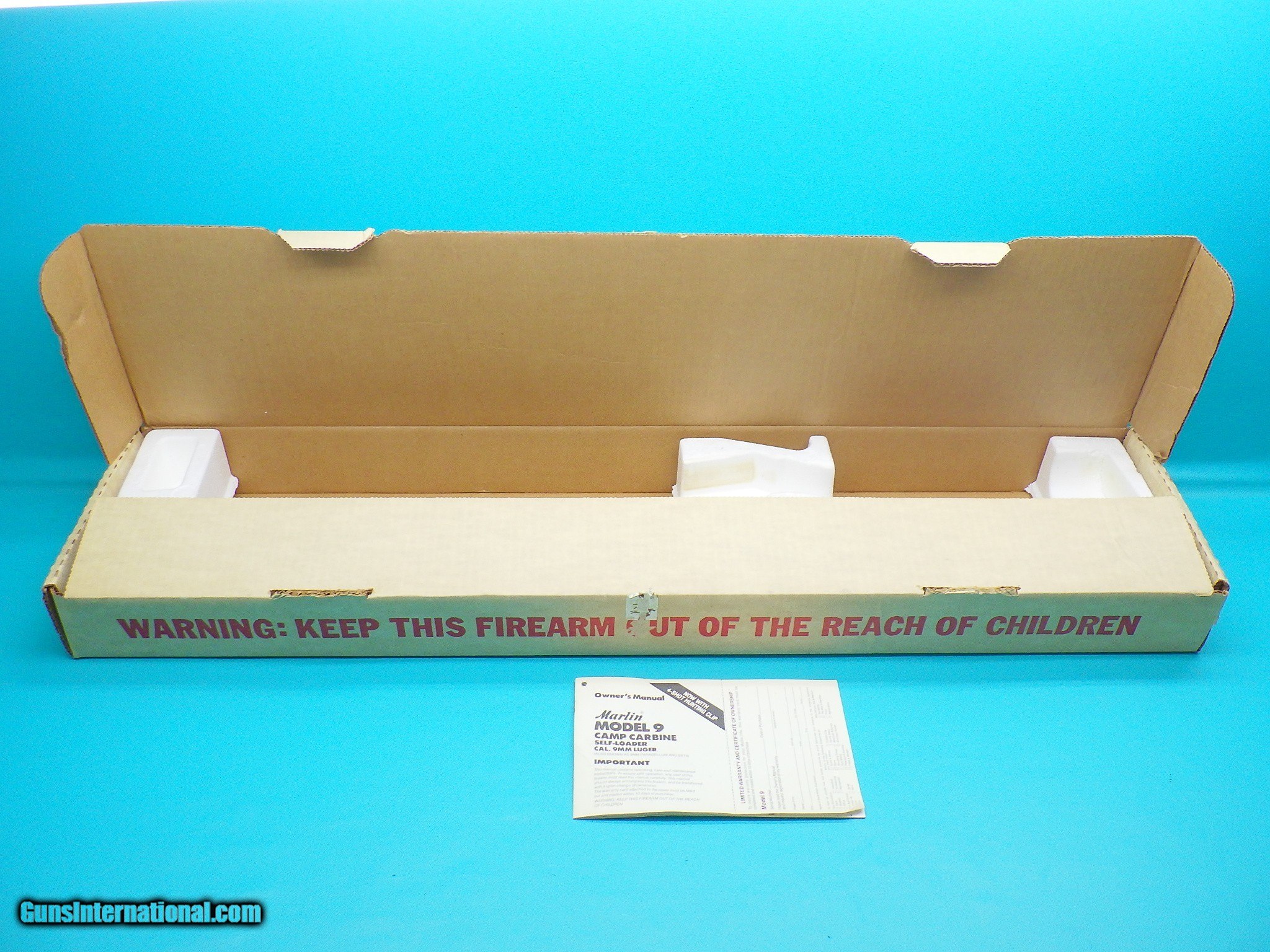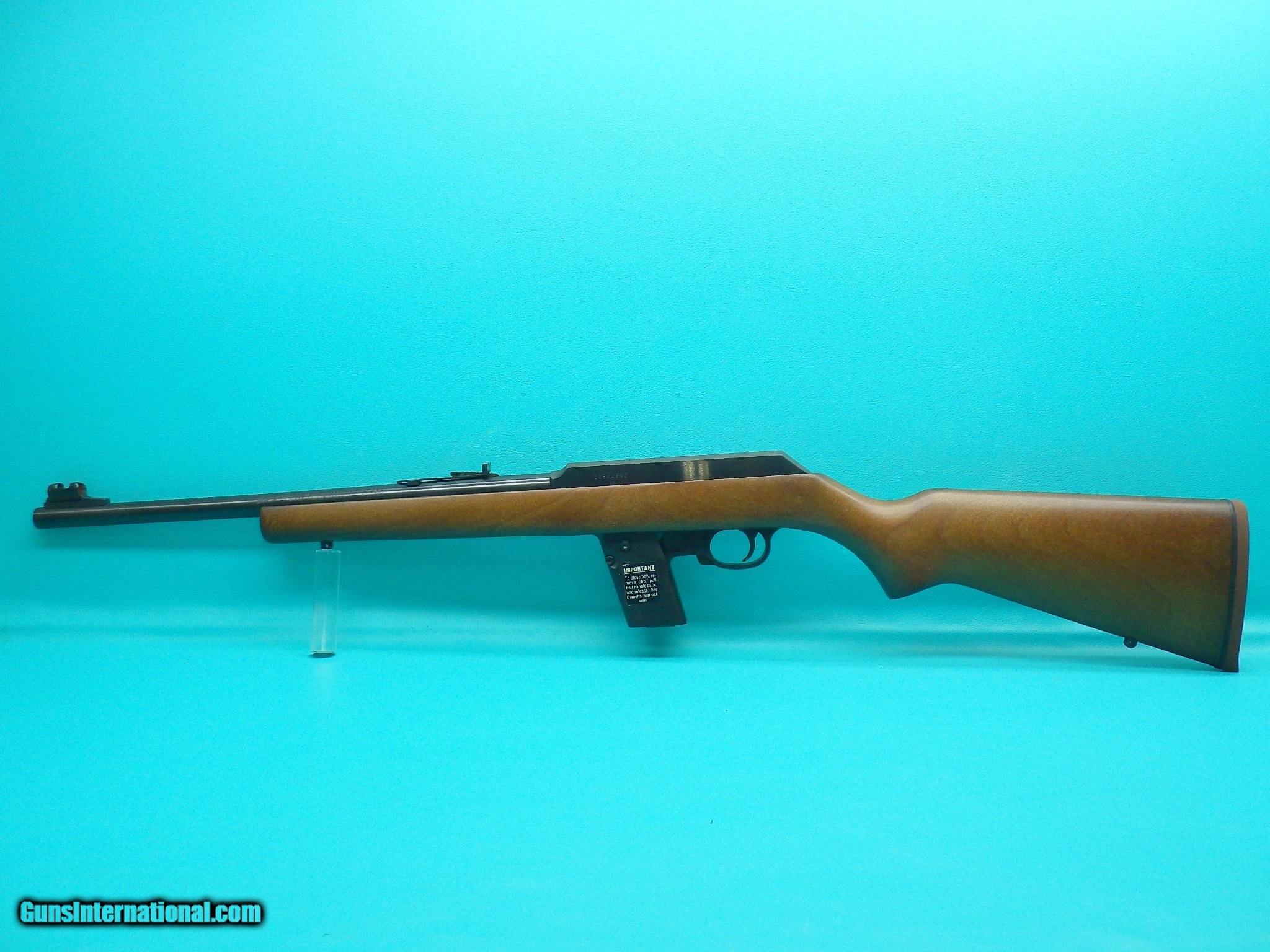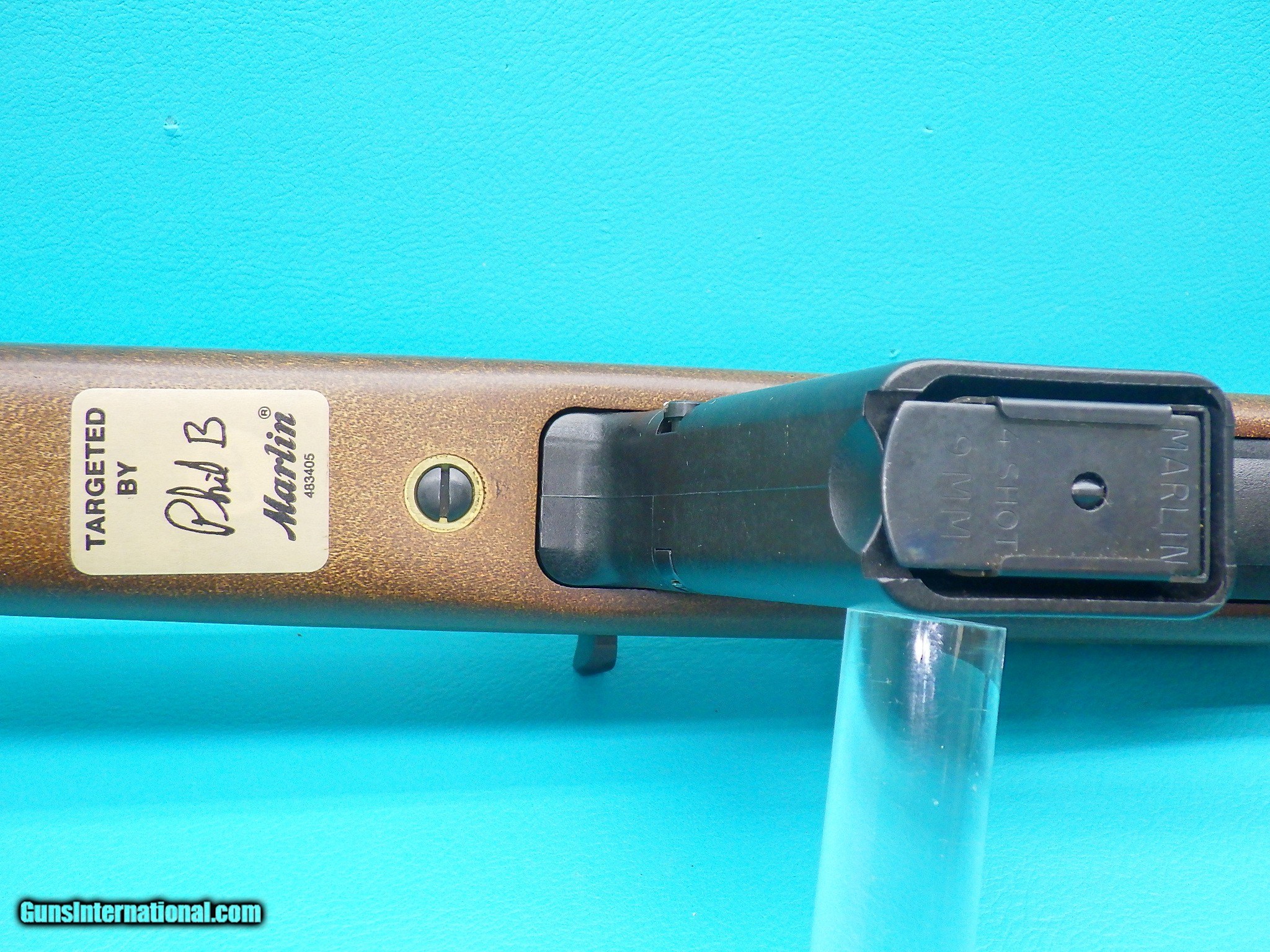 Description: ***SOLD***Make: Marlin Model: 9 Camp Carbine Finish: Blued Caliber: 9x19mm Action: Semi automatic Barrel length: 16 1/2 inch Bore: Sharp rifling with very minor fouling Stock material: Wood Sights: Adjustable flip up rear, hooded front with orange post Scope: None however the receiver is drilled and tapped for easy mounting MFG Date: 1989 Features: Smooth pistol grip stock with rubber butt pad, sling studs, lasr round hold open, and two factory 4 round magazines Extras: Serial number matching factory box, factory stickers on the rifle, and owners manual Condition: Excellent Shipping cost: $75.00 The rifle is in good working order with a smooth action and strong ejection. Please refer to the photos for the overall condition. FFL is requied.***SOLD*** SOLD Rifle Caliber: 9x19mm Parabellum (9mm Luger, 9x19mm NATO) Manufacturer: Marlin Model: 9 Camp Carbine Serial Number: 11584592 |