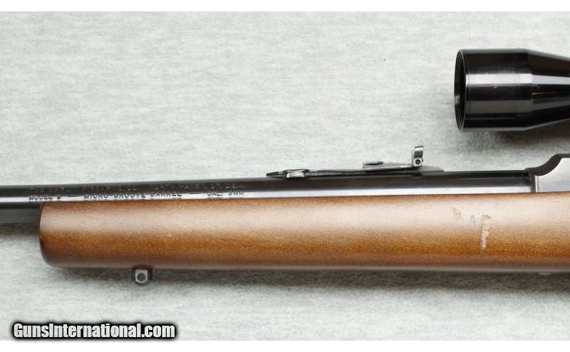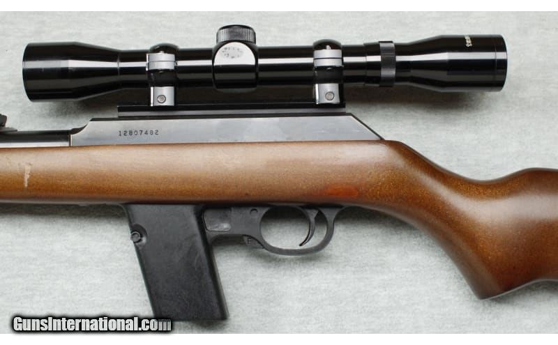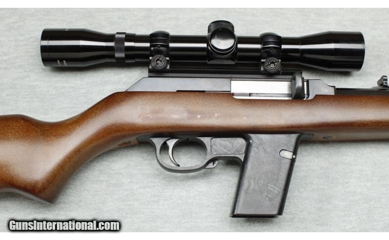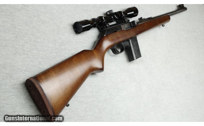 Description: Excellent condition, light wear, small nicks and scratches, comes with 5 mags. Semi auto 9mm rifle, 16" barrel, blued finish, smooth action, iron sights and manual trigger safety. Smooth hardwood stock with factory recoil pad, sling swivel mounts and Tasco 4x32 scope installed. 9mm Luger SOLD Chambers: Semi auto Metal Condition: Excellent Wood Condition: Excellent Bore Condition: Bright Barrels: 16 Triggers: Factory Stock Dimensions: 14" LOP Fore End: Smooth Butt Pad: Factory pad Sights: Iorn sights and Tasco 4x32 scope Item Location: La Vista, NE |