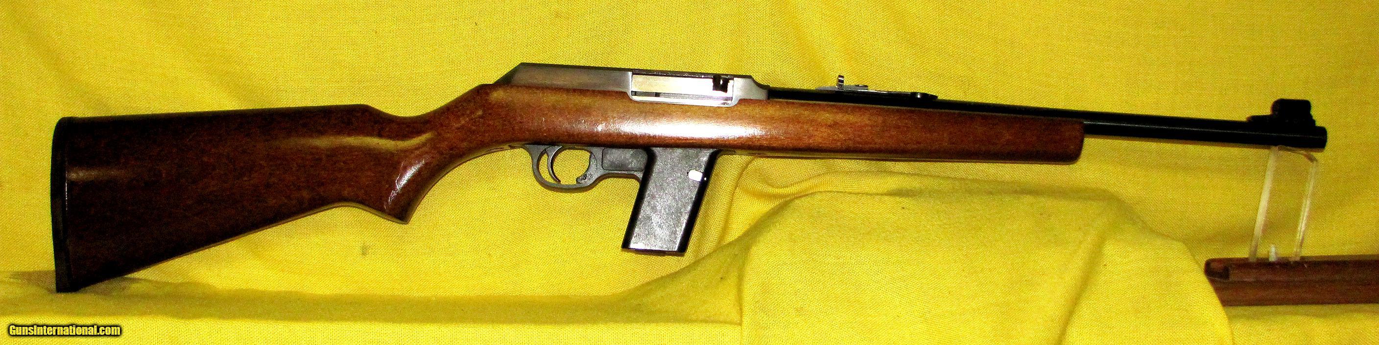 Description: MARLIN model CAMP 9 in 9MM CAL., with 16 1/2" barrel. Color BLUE. MARLIN MODEL CAMP 9, MIRROR BORE, WOOD HAS A FEW STORAGE DENTS OTHERWISE EXCELLENT CONDITION, COMES WITH A FACTORY ORIGINAL TWELVE ROUND MAGAZINE, 98%+ FACTORY FINISH. OUR NEW STOCK # D31818 Condition 98%. Serial number 15001902. SOLD |