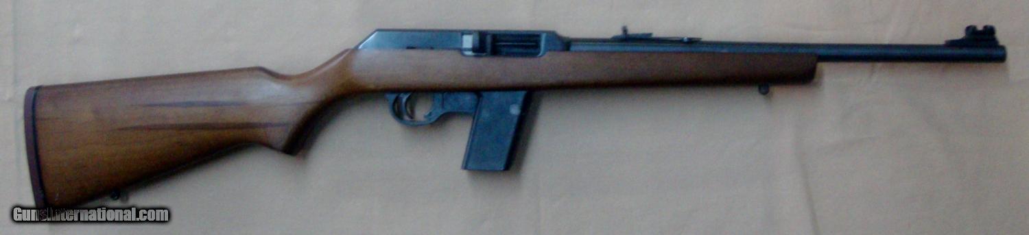 Description: Marlin Camp Carbine 9mm. This rifle has 16-1/2" barrel and 14-1/4" length of pull. Comes with 2-12 round magazines. Very nice condition. SOLD |