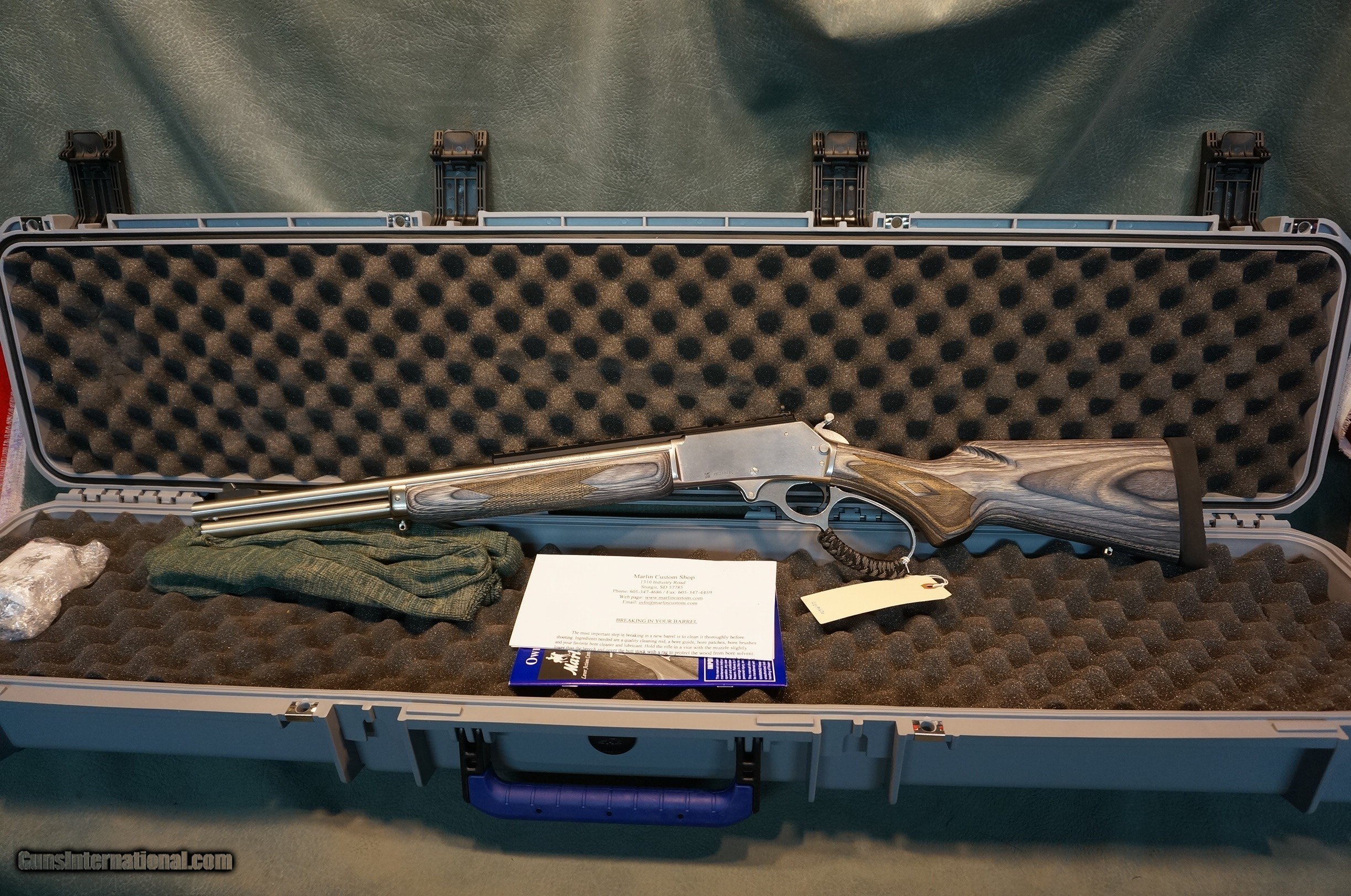 Description: Marlin Custom Shop Upgraded 1895SBL Modern Lever Hunter 45-70,stainless steel,18" barrel,laminated stock,XS rail,action job,happy trigger,big loop lever,paracord lever wrap,accurizing,deburring,new in the deluxe custom shop case. GUN COLLECTIONS WANTED FOR CASH! We buy, sell, consign and trade new and used firearms. This is our 44th year in business.To send your FFL or for tracking info please e-mail shippingfirststopguns . We offer 90 day layaways with 20% down. No return on layaways. Firearms will need to be transferred through a FFL dealer. Prices reflect a cash discount. There will be 3% added to credit card sales. We trade for gold and silver. THANK YOU! SOLD |