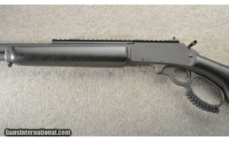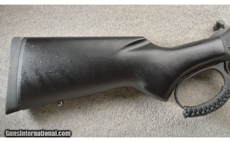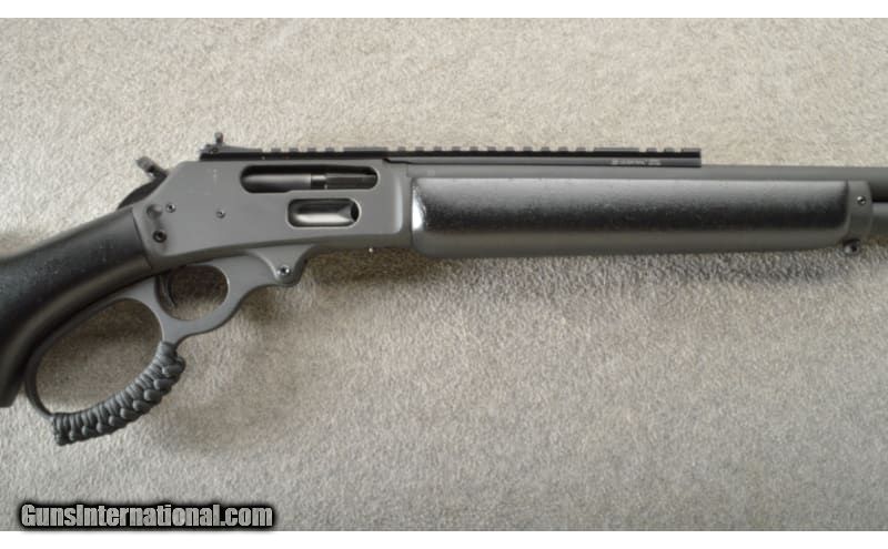 Description: Marlin Dark Series chambered 45-70 Government with a 16.25" barrel. This Marlin Dark Series features a tough black matte Parkerized finish and a black-webbed hardwood stock, threaded 16.25" barrel with 11/16"x24 thread, para cord wrapped big-loop lever, cross bolt safety, XS Lever Rail with a ghost ring peep and fixed ramp front sight, and a para cord sling. .45-70 Government SOLD Chambers: 5 shot lever action. Metal Condition: "Minor handling marks on the top rail from a scope that was previously mounted, and a few light scuffs on the right side of the receiver. Wood Condition: 99%. Bore Condition: Very strong bore. Barrels: 16.25" barrel. Triggers: Single. Stock Dimensions: LOP 13 3/8". Fore End: Textured. Butt Pad: Rubber. Weight: 7.25 lbs Sights: "Fixed, ghost ring. Item Location: Owatonna, MN |