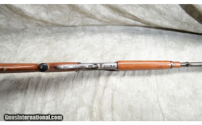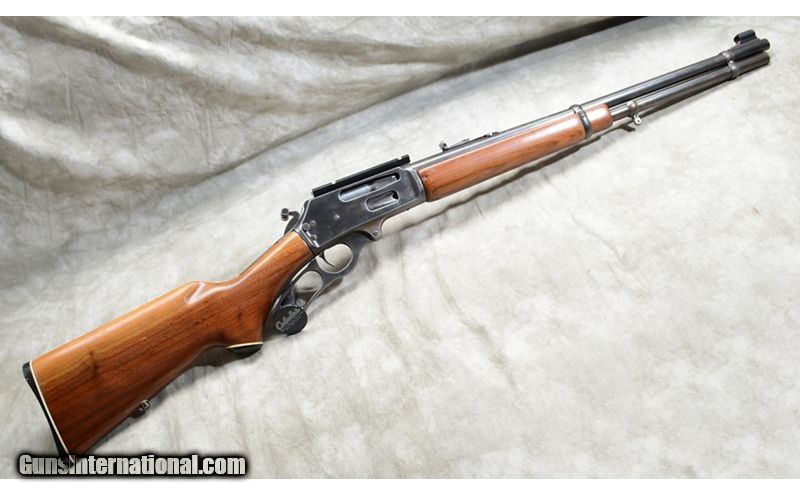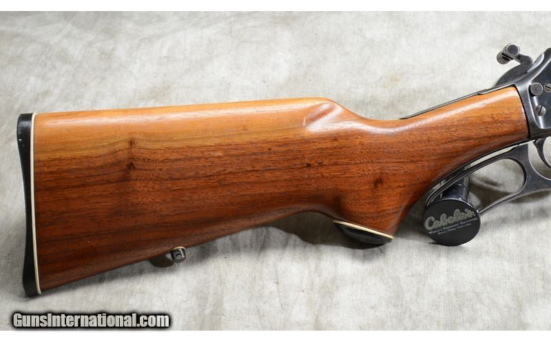 Description: Good everyday woods runner's rifle featuring nice walnut, hammer extension, .35 Rem chambering and set up for scope. .35 Remington SOLD Chambers: 7 Metal Condition: Good to very good. Most of the blue remains but there is some fading overall. Wood Condition: Good. Forearm has a couple of dents/digs. The butt plate stands a little proud so the stock has probably been cut slightly. Bore Condition: Shiny and bright with crisp rifling. Barrels: 20-inch Triggers: Factory trigger. Stock Dimensions: 13-1/2 inch LOP. Fore End: Well-matched walnut. Butt Pad: Black Marlin plate. Weight: 7 LB. Sights: Hooded white bead and semi-buckhorn "iron sights." Drilled and tapped for scope with base installed. Item Location: Rogers |
