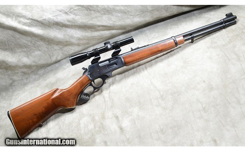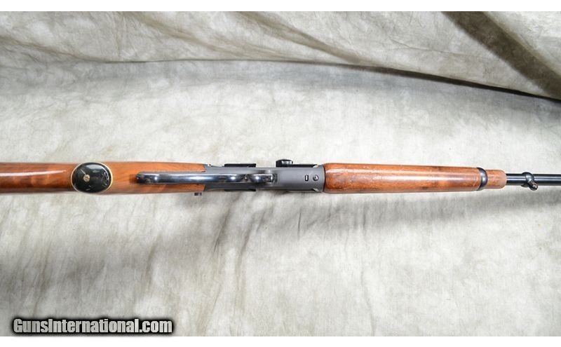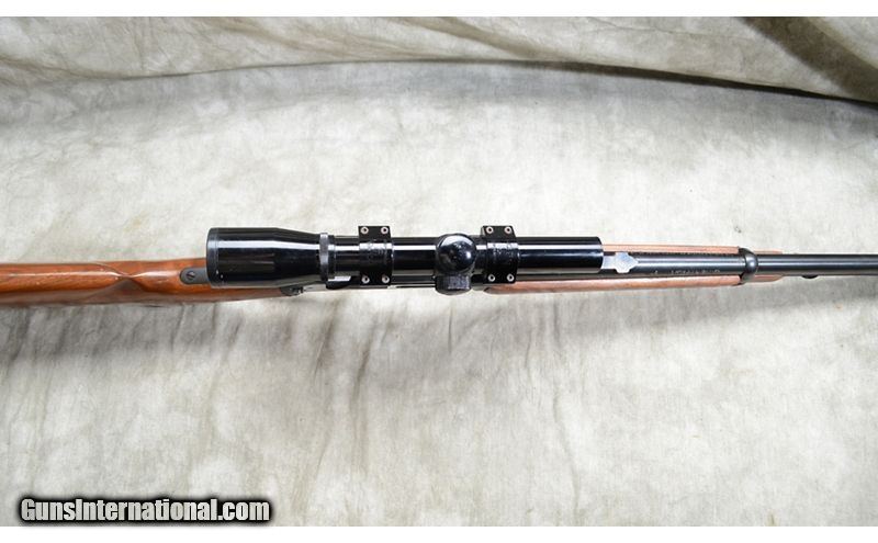 Description: The definitive "deer gun" featuring nice walnut stock with some figure, "iron" and optical sights with "shoot-thru" scope mounts as well as a cross-bolt mechanical safety. This one is not a safe queen but was well-maintained and is ready for the next deer hunter to take over. .30-30 Winchester SOLD Chambers: 7 Metal Condition: "Good to very good. The blue is nearly 100%, but there is a bit of shallow pitting on the receiver. Wood Condition: Good to very good.There are a number of handling marks. Bore Condition: Clean and shiny but a bit dark. Barrels: 20-inch Triggers: Factory trigger. Stock Dimensions: 13-3/8 inch LOP. Fore End: Smooth walnut. Butt Pad: Black plate. Weight: 7 lb - 15 oz Sights: Hooded bead and semi-buckhorn "iron" sights. Outfitted with a Burris Banner scope. Item Location: Rogers |