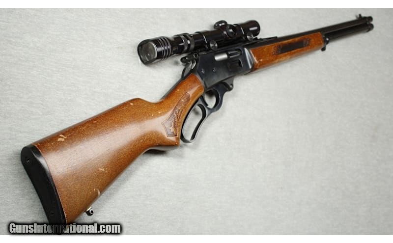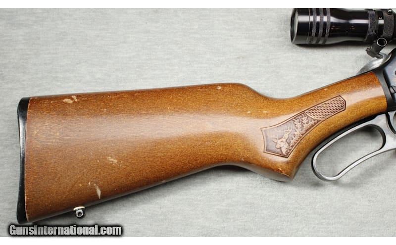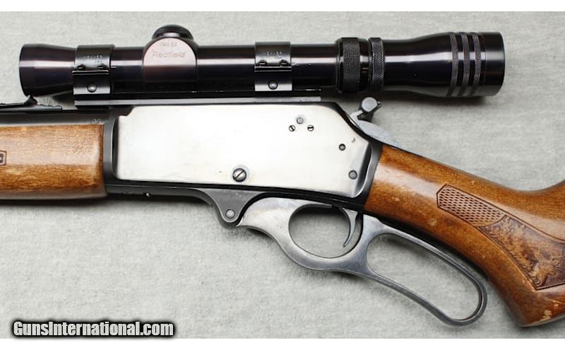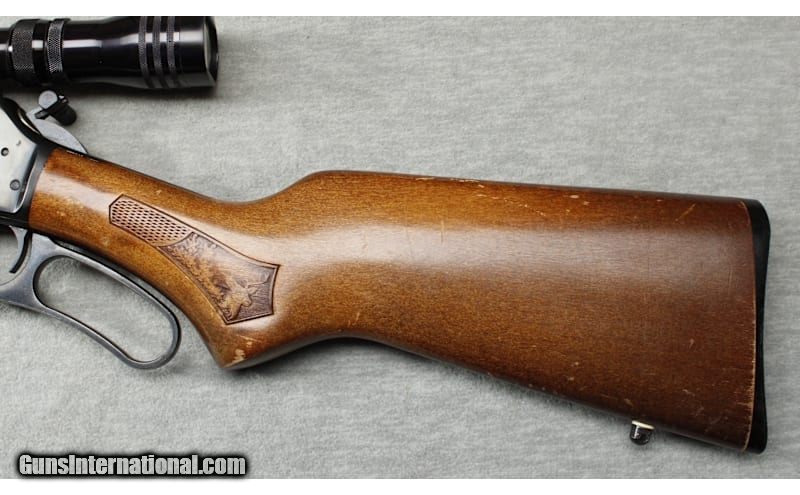 Description: Very good condition, some finish wear, scratches, small nicks & dings. Marlin lever action rifle, 20" barrel with full length mag tube, blued metal, iron sights and Redfield 1 3/4-5x scope. Chckered hardwood forend and butt stock with Marlin butt plate. .30-30 Winchester SOLD Chambers: Lever action Metal Condition: Very good Wood Condition: Very good Bore Condition: Bright Barrels: 20 Triggers: Factory Stock Dimensions: 13" LOP Fore End: Checkered Butt Pad: Factory butt plate Sights: Iron sights and Redfield 1 3/4-5X scope Item Location: La Vista, NE |