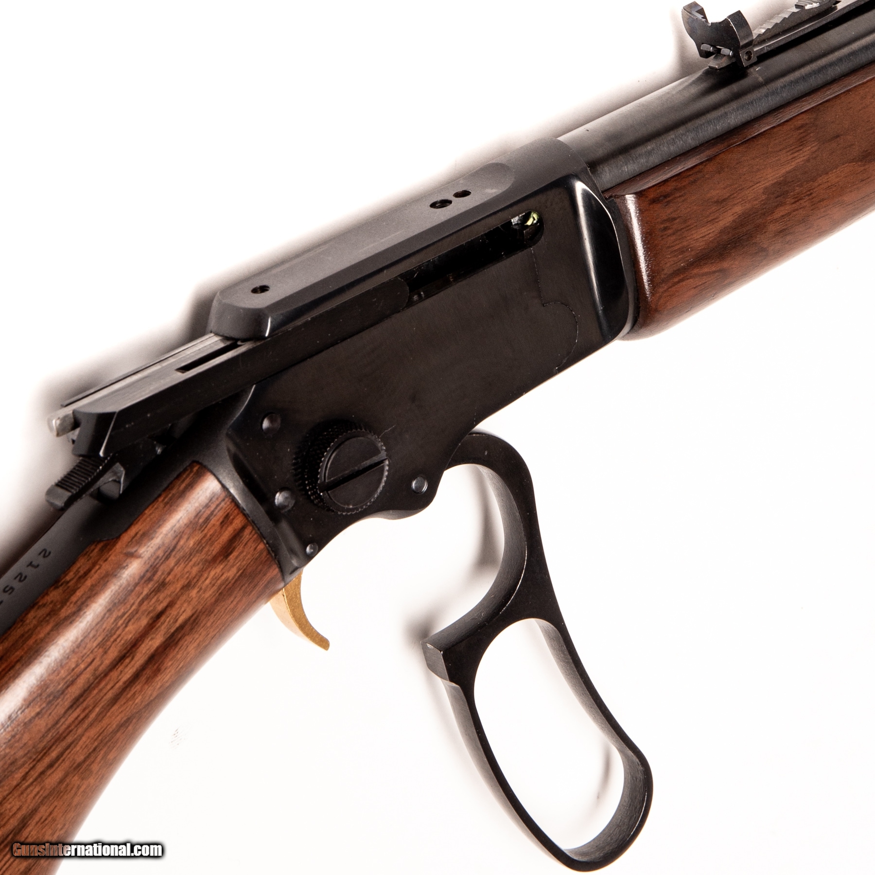 Description: Guns Listing ID: 645838 The Marlin Golden 39A is a lever-action rifle designed off the Model 1891, which was the first-ever 22 LR lever-action rifle. The main difference between the two is that the Golden 39A offers a cross hammer safety. Otherwise, it has the same tried and true design from the late 1800s. This model cycles 22 LR, 22 Short, and 22 Long. It is JM stamped and is missing the receiver top slave screws. Get the best bang for your buck when you get a Certified Used Firearm . When you see the Certified Used stamp on any of our firearms, you can be confident that you’re getting exactly what you want – a gun only in very good to excellent condition and held to the highest quality standard. All Certified Used Guns come with a ‘no questions asked’ return policy . PLUS, ALL CERTIFIED USED GUNS SHIP FREE! SOLD Manufacturer: MARLIN Model: GOLDEN 39-A Caliber Info: .22 S/L/LR Condition: Used - Certified Barrels: 24 barrel Finish: BLACK |