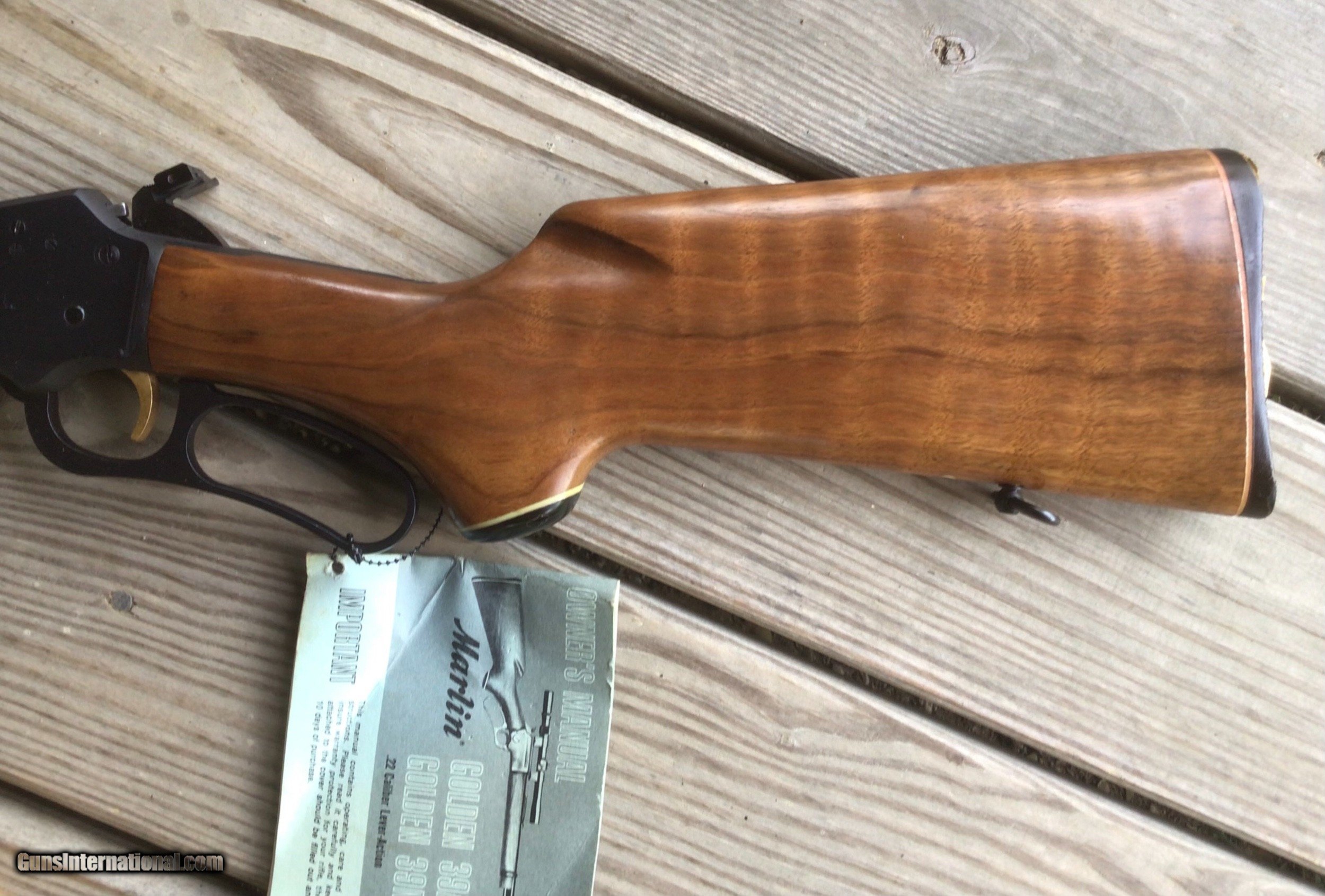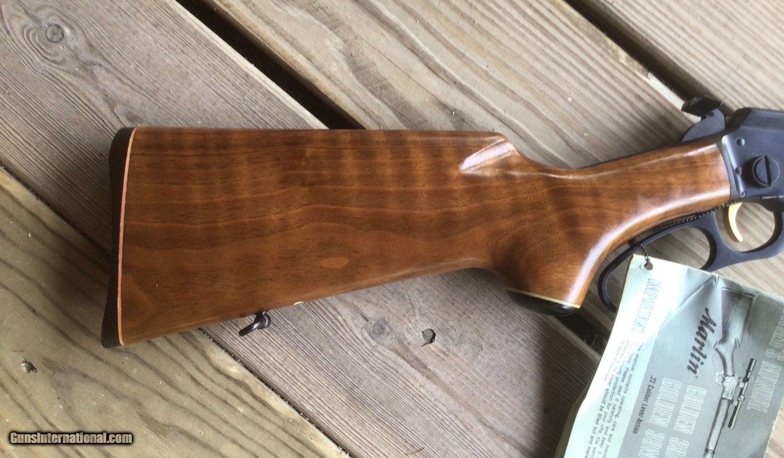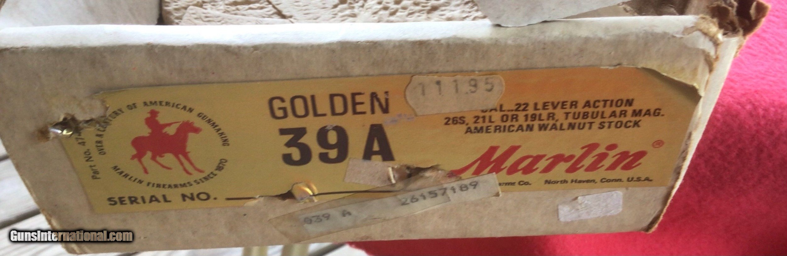 MARLIN GOLDEN 39A, 22 LR., JM STAMPED, OUTSTANDING WALNUT, NEW UNFIRED IN THE BOX WITH OWNERS MANUAL STILL ATTACHED TO THE GUN