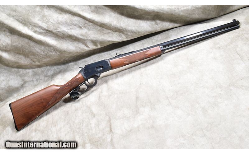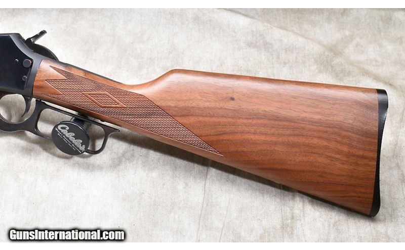Description: The Marlin 1895 CB, Cowboy model features 24-inch octagonal barrel, straight grip walnut stock with nice grain, side ejection, and scope ready. .357 Mag./.38 Special SOLD Chambers: 10 Metal Condition: LNIB. Wood Condition: LNIB. Bore Condition: LNIB. Barrels: 24-inch hexagonal. Triggers: Factory trigger. Stock Dimensions: 13-3/8 inch LOP. Fore End: Well-matched checkered walnut. Butt Pad: Black plate. Weight: 6 lb - 10 oz Sights: "Brass bead and buckhorn open sights, drilled and tapped for your choice of scope. Item Location: Rogers |