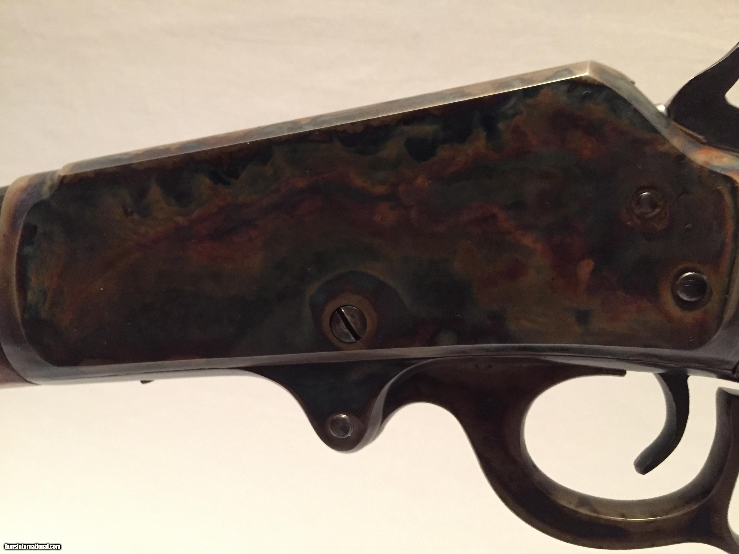 Description: MOD 93 Trapper in 30-30-15" round barrel.Only about 61 15” Bbl carbines mfg Excellent-Vivid case color on receiver and lever An all original. Very nice wood, all matching numbers !!! Barrel retains 97-98% original blue with sharp rifling. The magazine tube is toning a bit on the bottom. A wonderful investment quality Marlin that would be hard to improve on. Comes with ATF letter... Professional applied coat of lacquer on the receiver to protect the case color from fading. SOLD Curio/Relic: Yes Serial Number: A855 |