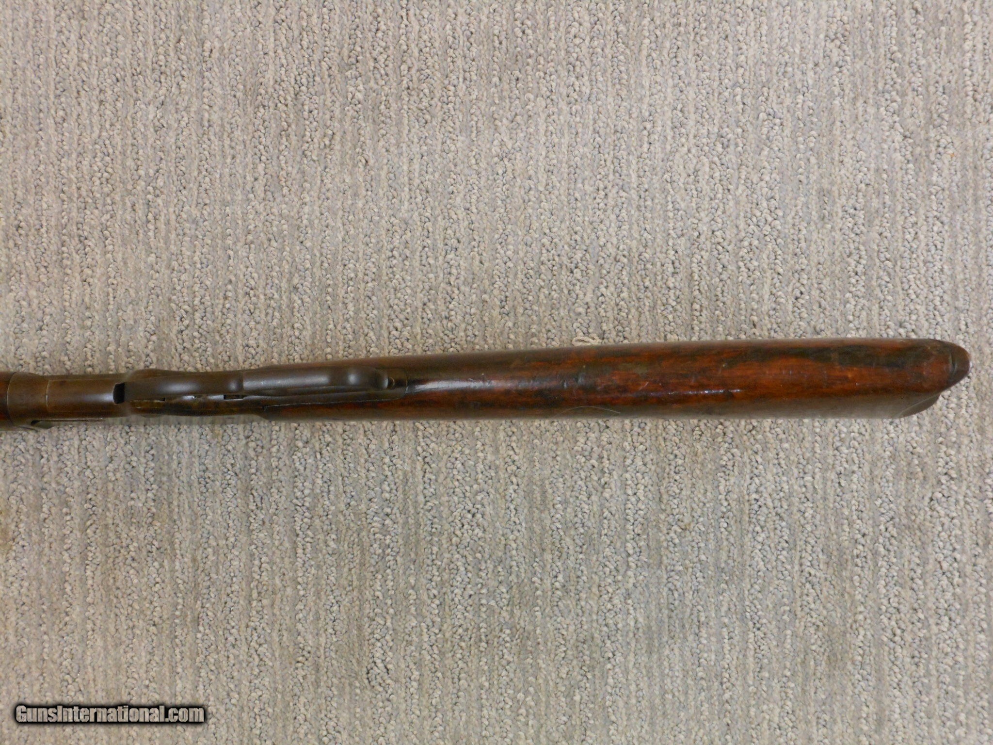 Description: This Marlin was produced around 1884. The rifle's serial number is 16420. This rifle has a 26 inch barrel chambered to shoot the 38-55 W.C.F. cartridge. The bore is in good to very good condition with sharp lands. The sights appear to be original to this rifle. The finish is mostly brown patina. The stock and forend show the original factory finish. There is two small cracks on the right side of the forend by the loading gate. This is quite common for this rifle as the forend is very thin in this area due to the loading gate spring housing being located there. The action works fine with no issues. This rifle has not been abused or given rough treatment. This rifle shows honest frontier use and wear. Antique M.R. Consn. (1) F. No. 797 -26 Antique: Yes Rifle Caliber: .38-55 Winchester Manufacturer: Marlin Model: 1881 Serial Number: 16420 Barrel Length: 26 Inch Condition: Mostly Patina With Traces of Original Bluing Metal Condition: Very Good Wood Condition: Very Good Bore Condition: Good To Very Good Barrels: Octagonal Barrel Type: Commercial Action: Lever Action Finish: Mostly Patina Sights: Standard For This Model Manufacture Date: 1884 Price: $2,200.00 Contact Seller |