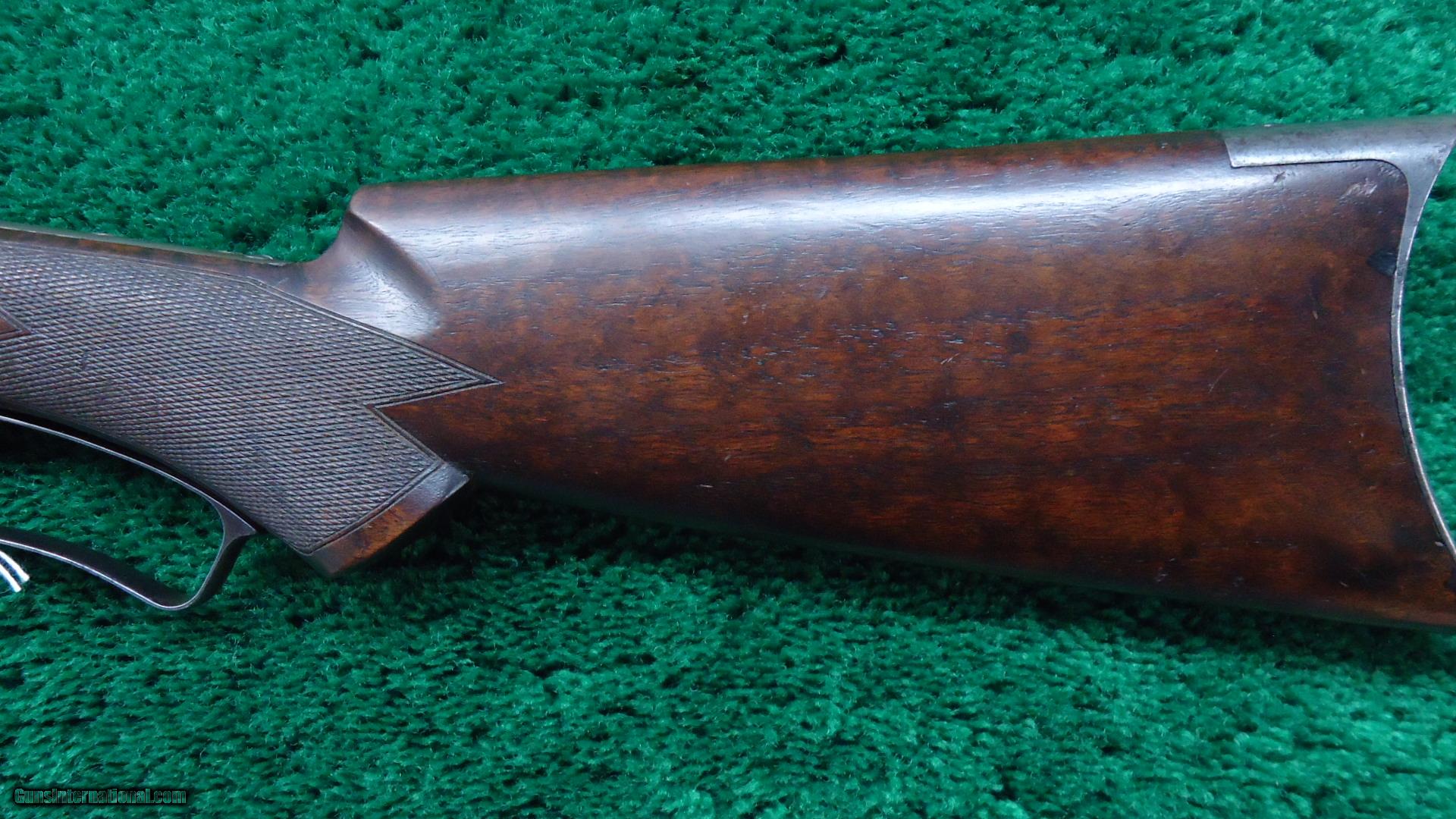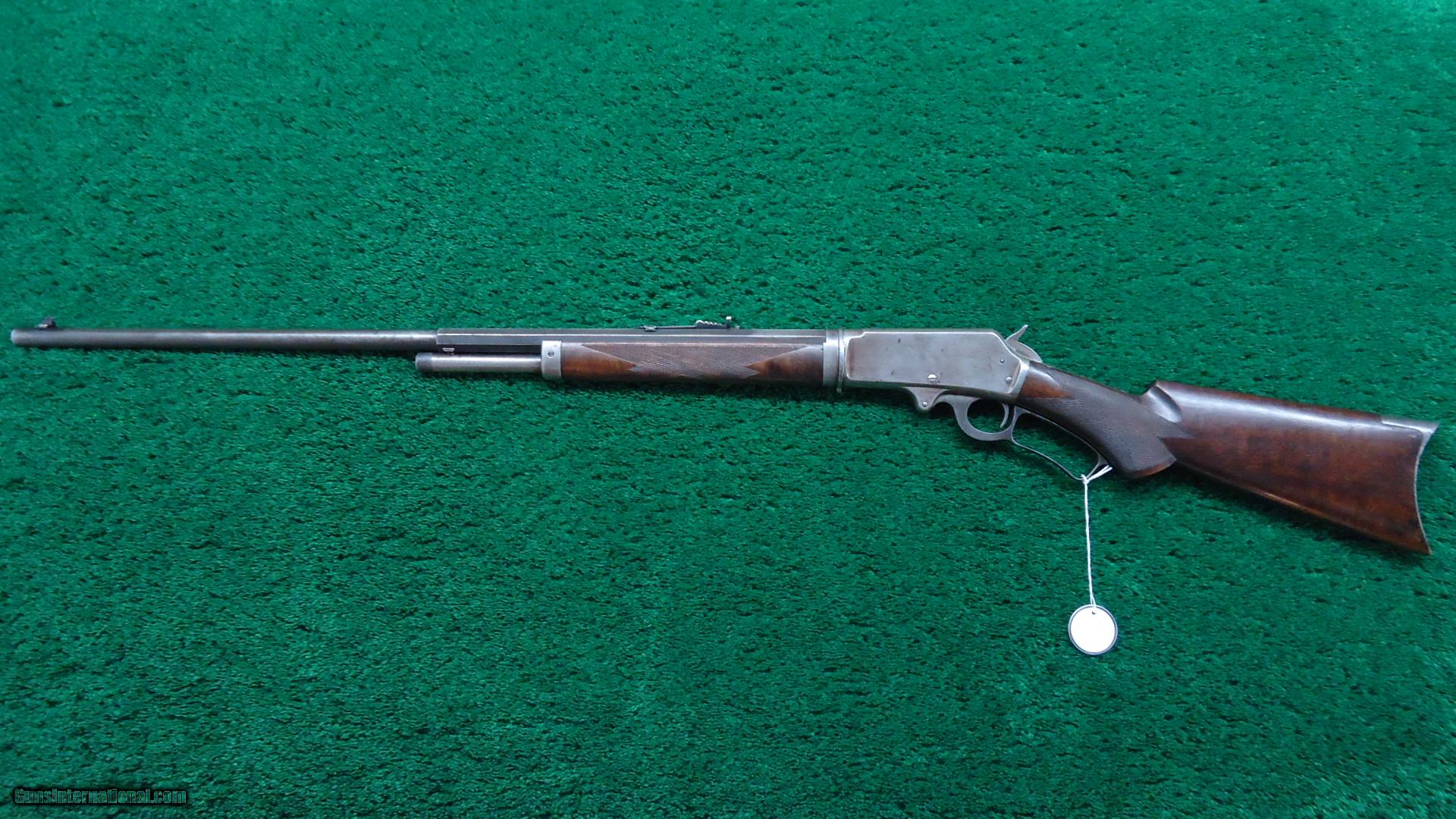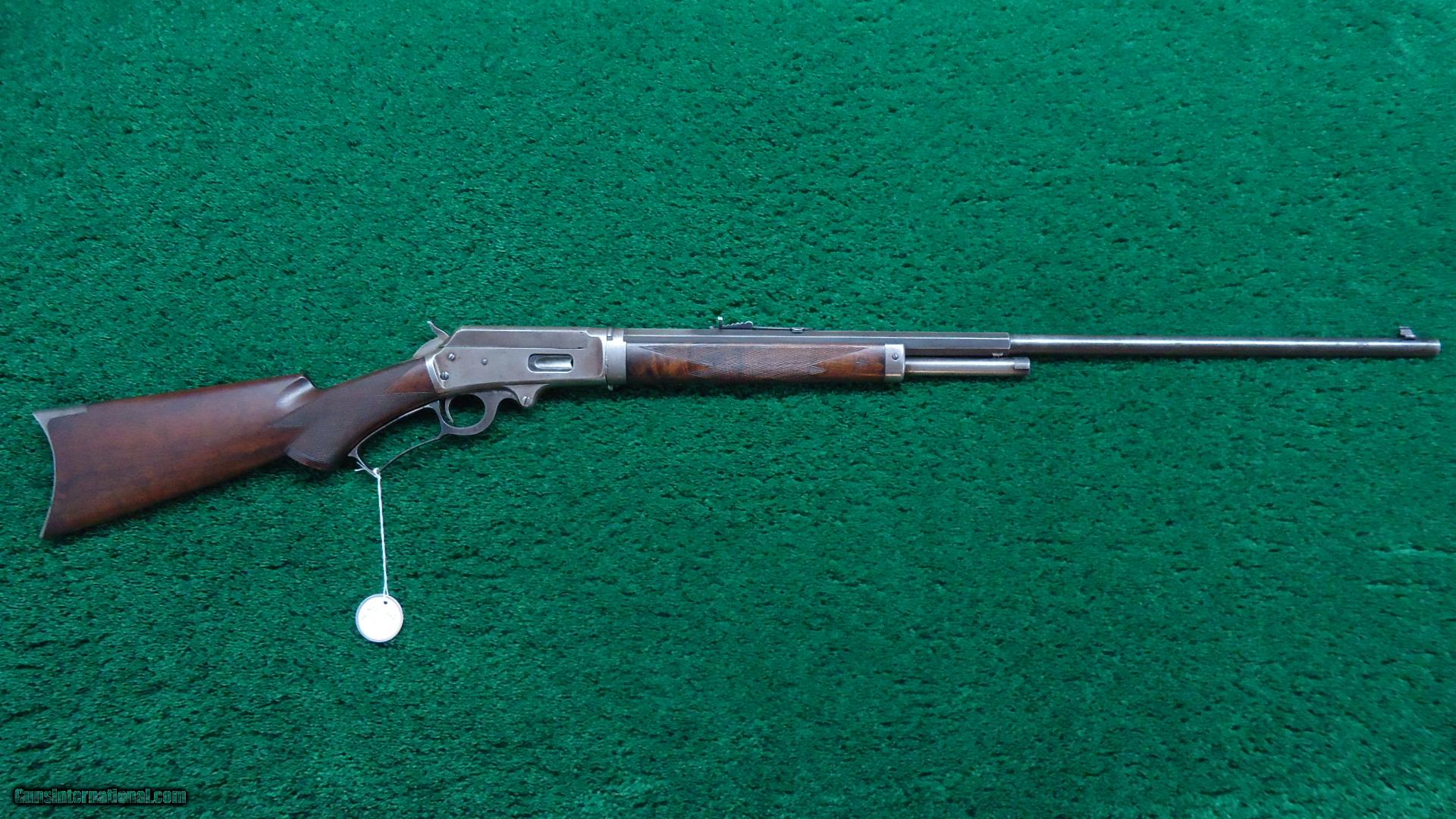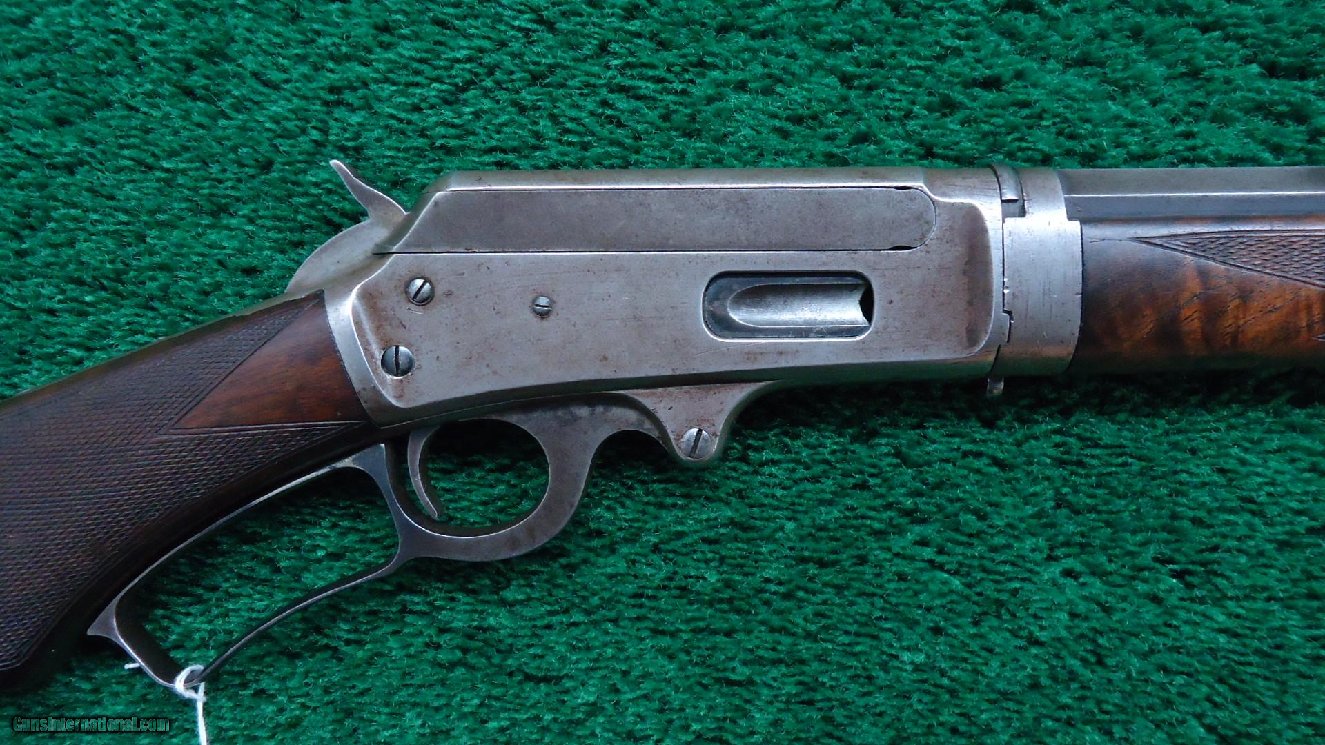 Description: Cal 32-40. 26" half oct bbl with a half magazine. Takedown frame. Fairly course checkering on the stock and may be a replacement. If it is it was done a long time ago and done well. A strange configuration being a little longer than usual for a Marlin. Nice burl wood with orig finish. Bbl and mag retain about 25% thinning blue. Receiver is a blue/grey color. Good functioning action. A Marbles replacement buckhorn sight. Leroy Merz Antique Firearms specializes in antique and vintage Winchesters and other fine American firearms. Since 1965 Mr. Merz has taken part in the world of firearms and has been a contributor to many well known reference books. Just recently we mailed the 126th edition of our privately-published catalog. We have hundreds of additional guns in every price range at our home online. Search for Merz Antiques in google. SOLD Curio/Relic: Yes |