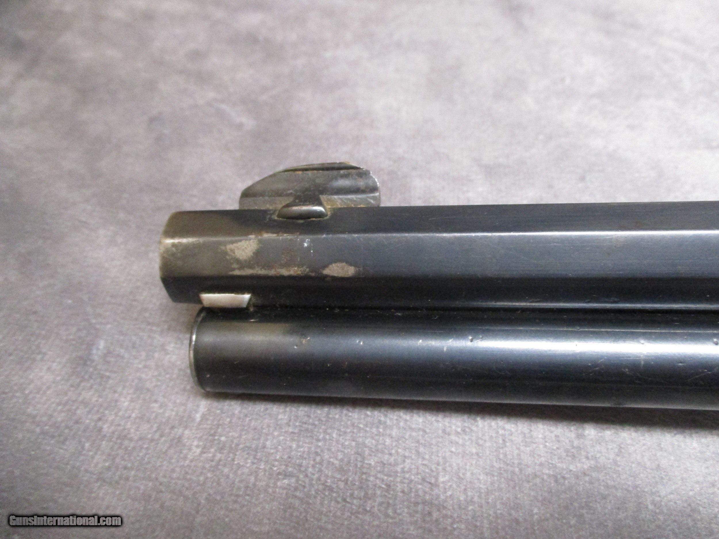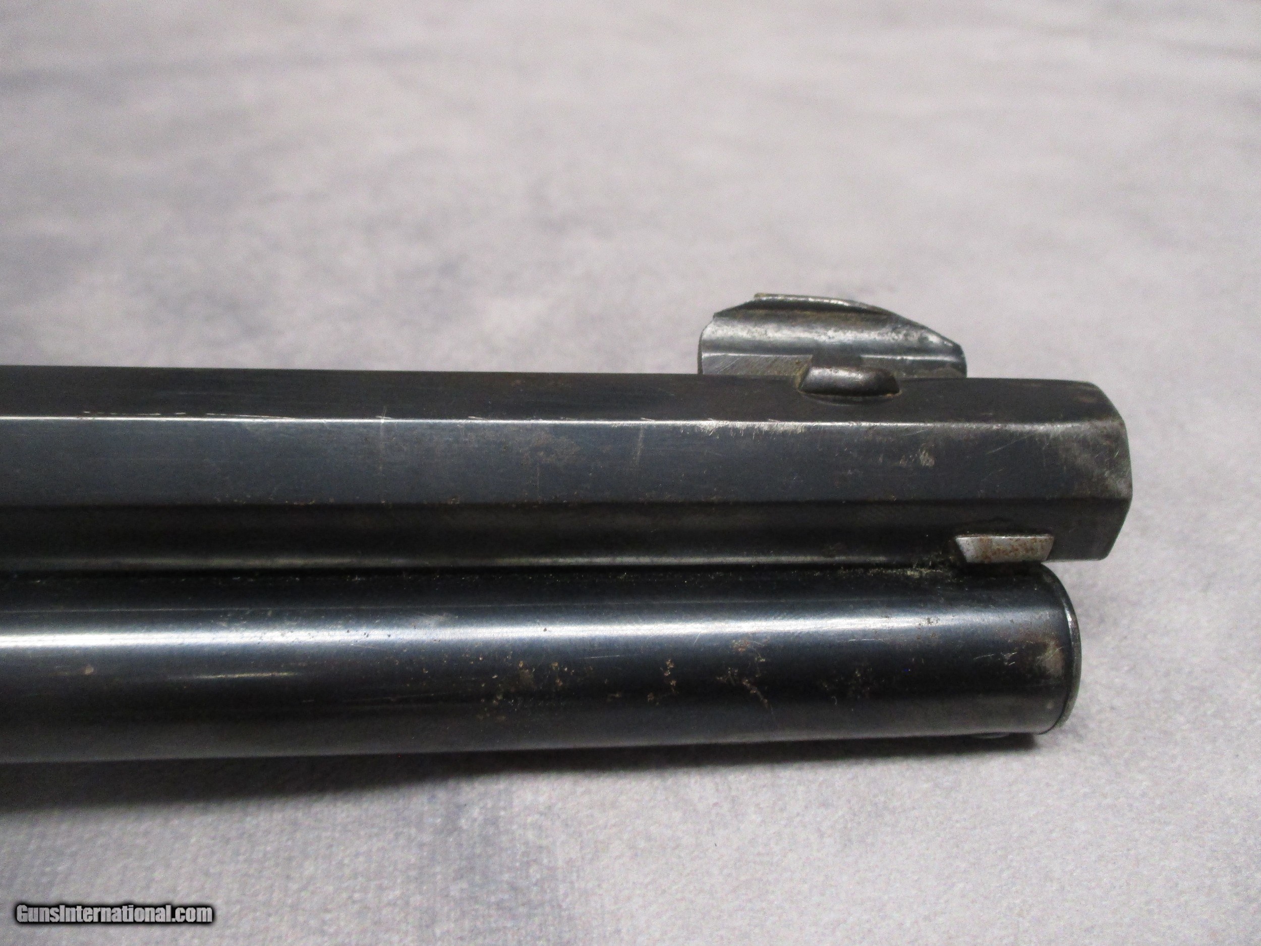 Description: Often forgotten due to the success of the Winchester Model 1894, the Marlin Model 1893 was the first Marlin rifle designed to take the then new smokeless powder cartridges such as the .30-30 Winchester. It was also available in .25-36 Marlin, .32 Winchester Special, .32-40, and .38-55. It was available in round or octagonal in barrel lengths of 24” to 32”. The receiver lever, hammer, and butt plate were usually color case hardened while the rest was blued. The Model 1893 was the first Marlin to exceed the 50,000-unit production mark. By the time production ceased in 1935, over 1 million had been sold. The rifle depicted is chambered for the classic .30-30 Winchester. According to research, this rifle was most likely manufactured in 1905. Supposedly, Marlin rifles built in 1906 were in the 400,000 serial number range. Marlin records are somewhat chaotic, as all the models numbers (1881, 1888, 1889, 1891, 1892, 1893, 1894, 1895, 1897) were numbered together in a single serial number range, with numbers often being duplicated. The dates recorded are also the shipping dates, not the date of manufacture. To further confuse matters, records do not officially exist for guns with a serial number higher than 355,300, hence the 1905 estimate. The wood furniture original to the rifle as is the metal butt plate. There is a very narrow crack on the right upper side near the hammer. The screw that retains the trigger is likely a replacement as there is no bluing on it. The rifle is likely to have been refinished as 1893 rifles were usually color case hardened on the receiver and the shade of blue on the barrel is not the same shade of blue that a then-new 1893 would have had when it left the factory. Externally there is some light rust in a few spots and there is some finish loss on the receiver. The bore is in decent shape for a rifle at the age of 116. There is some pitting in a few places but the rifling is well defined which should give fairly good accuracy. Despite being mostly forgotten, the Model 1893 served an important role in U.S. firearms history, serving as the basis for the improved Model 36 in 1936, which itself was eventually improved upon, resulting in the famous Marlin 336 rifle, which in 1983, was ranked as the #2 all-time leader in U.S. high-powered sporting rifle sales after the Winchester Model 1894. SOLD Rifle Caliber: .30-30 Winchester Manufacturer: Marlin Firearms Co. Model: Model 1893 Serial Number: 373443 Bore: Rifled Condition: Fair to Good Barrel Type: Octagonal Action: Lever action Triggers: Single Stock: Walnut, straight grip Fore End: Walnut with metal cap Butt Pad: Metal plate LOP: 13.25 inches (337mm) Finish: Blued Sights: Ladder rear sight, Marble blade front sight, sight radius 20.75 inches (527mm) Manufacture Date: 1905 |