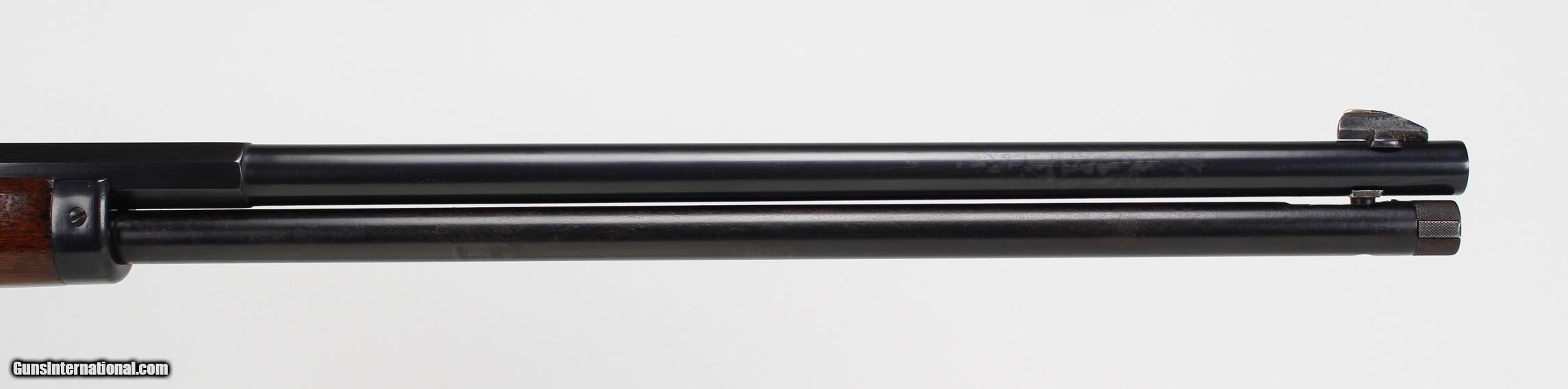 Description: Marlin Model 1893 Takedown Model. 26" Half Round/ Half Octagon, Good Bore, Mechanically Excellent. SN# 185015. Mfg. 1899. THIS WAS A SPECIAL ORDER RIFLE. Octagon/ Round barrels only available thru special orders. Early model tang marking "Model 1893". 13 1/2" LOP. Full length tube magazine. Refinished metal and wood. SOLD |