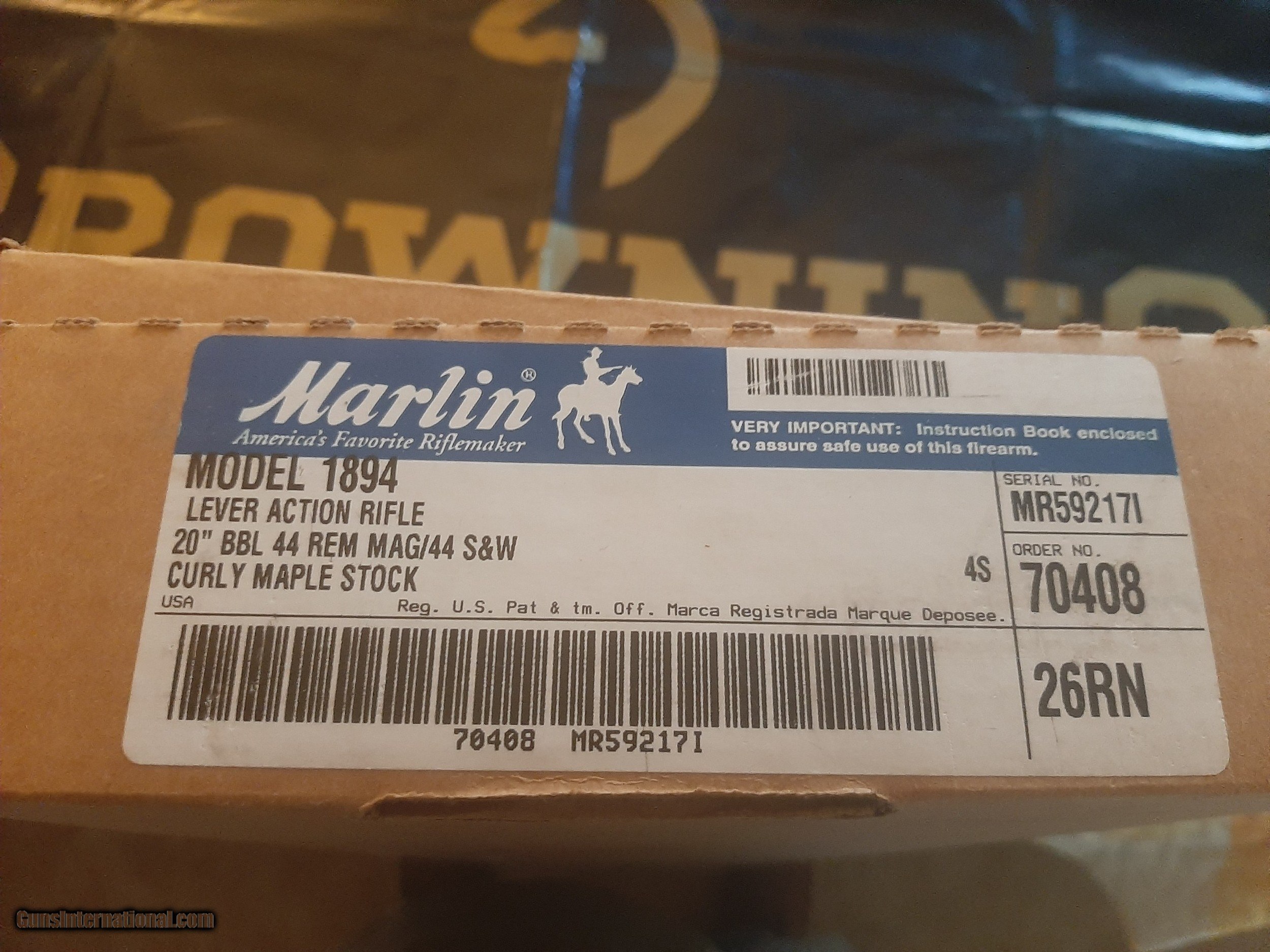 Description: Marlin Model 1894 44 Mag Curly Maple that is NIB W/Paperwork. Not many of these produced. Credit Cards add 3%. Shipping and Insurance is 65.00. SOLD Rifle Caliber: .44 Magnum |