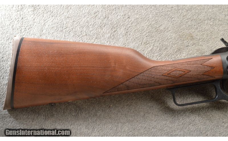 Description: This is a new in box Marlin model 1894. This elegant little carbine is chambered for .45 long Colt. Its handy size is punctuated by a quick-pointing, straight-grip stock design and old west style. The carbine has adjustable semi-buckhorn sights on a 20 inch blue barrel. .45 Colt SOLD Caliber Info: .45 Long Colt. Chambers: Lever action repeater 10+1. Metal Condition: New in box. Wood Condition: New in box. Barrels: 20 inch blue barrel with deep-cut Ballard-type rifle and a 1-38 twist. Triggers: Single blue. Stock Dimensions: 13 3/8 inch LOP. Fore End: Matching checkered black walnut. Butt Pad: Marlin brown rubber butt pad. Sights: Adjustable semi-buckhorn folding rear sight, ramp front sight with brass bead and Wide-Scan hood. Solid-top receiver tapped for scope mount. Item Location: Owatonna, MN |