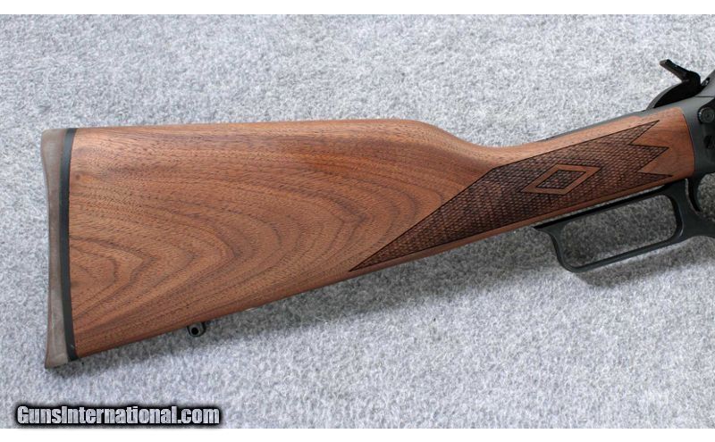 Description: Reminiscent of the sporting lever-action rifles of an earlier era, this elegant short rifle features Ballard-type rifling, an American black walnut straight-grip stock, cut checkering and a rubber rifle butt pad. Sights include an adjustable semi-buckhorn folding rear and ramp front sight with brass bead and Wide-Scan™ hood. The solid-top receiver is tapped for a scope mount. .45 Colt SOLD Metal Condition: Excellent Wood Condition: Excellent Barrels: 20 inch barrel with deep-cut Ballard type 6 groove rifling with 1:38 inch twist Stock Dimensions: 13 3/8 inch LOP Fore End: Checkered walnut Butt Pad: Marlin rubber pad Sights: Adjustable semi-buckhorn folding rear sight, ramp front sight with brass bead and Wide-Scan hood. Solid-top receiver tapped for scope mounting Item Location: Lehi, UT |