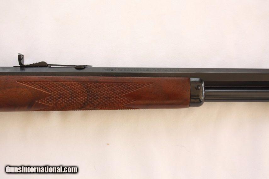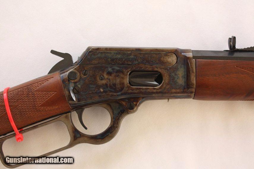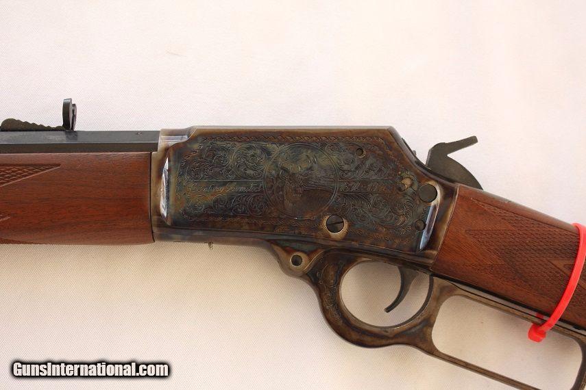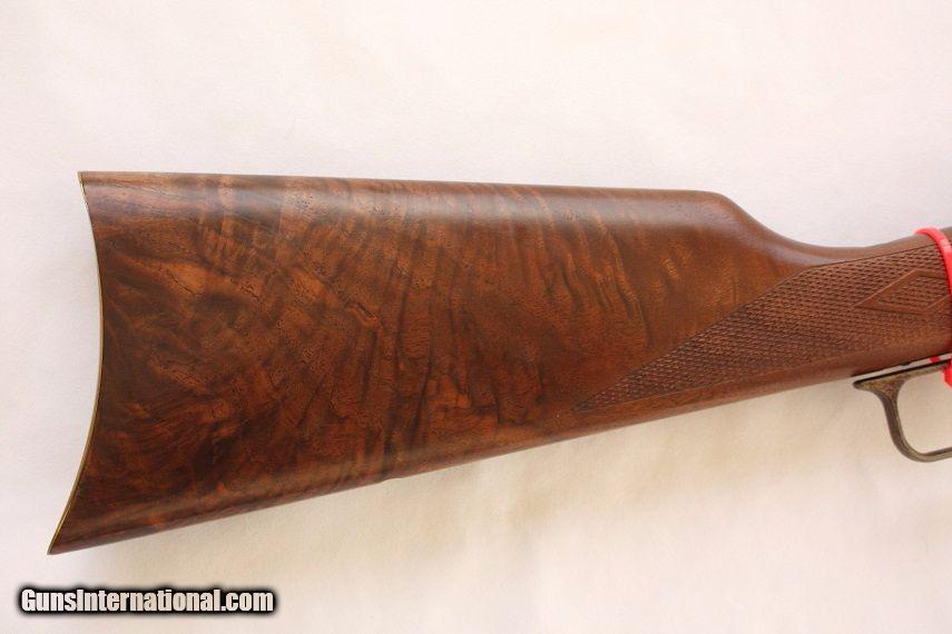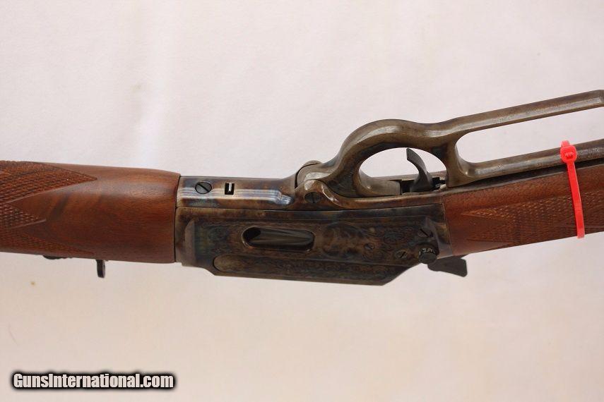 Description: A one of a kind rifle as new and unfired the JM stamped Model 1894. This 1894-1994 Century Limited Edition Marlin rifle celebrating Model 1894's 100th anniversary is chambered in 44-40 WCF, 24" tapered octagonal bbl and 12 round full length tube magazine. The rifle has a beautiful fancy walnut stock with hand cut checkering, brass cresent butt plate, gold accented inlay with hand engraving by executed by Bottega Giovanelli and case hardened metal by Doug Turnbull. This rifle is as new, one of 2500 produced, 100% factory and produced before the Remington buy out. The original factory box is in near perfect condition with cardboard sleeve depicting classic Marlin mural graphics and includes factory manual and warranty card still sealed in the plastic protective bag. Here is your chance to obtain a really nice piece of Original Marlin firearm history that would make a great addition to any collection. I am a licensed FFL dealer and welcome any and all out-of-state inquiries. Listing price is for cash, check or USPS money order. Ship $40 to your FFL - Insurance optional but stongly recommended. Ship to AK and HI calculated seperate. Texas residents to pay 8.25% sales tax - NO TRADES AND NO CALIFORNIA SALES. Additional photos available upon request. ****PLEASE NOTE - I WAS RECENTLY INFORMED BY MY CREDIT CARD PROCESSOR THAT BECAUSE I SELL FAIREARMS, THEY WERE CLOSING MY ACCOUNT SO I CANNOT ACCEPT CREDIT CARDS AT THIS TIME. I APOLOGIZE FOR ANY INCONVENIENCE THIS MIGHT CAUSE.***** LSR&R offers a full line of firearms services. We will consign your firearm for 10% of the sale price. Tranfers $30 per serial number. We assist with importation on a case by case basis. Thank you for viewing this listing and please take a moment and review our other fine firearms as seen here on Guns International. SOLD Manufacturer: Marlin Model: 1894 Caliber Info: 44-40 WCF Condition: NOS Metal Condition: Factory Wood Condition: Factory Action: Lever |