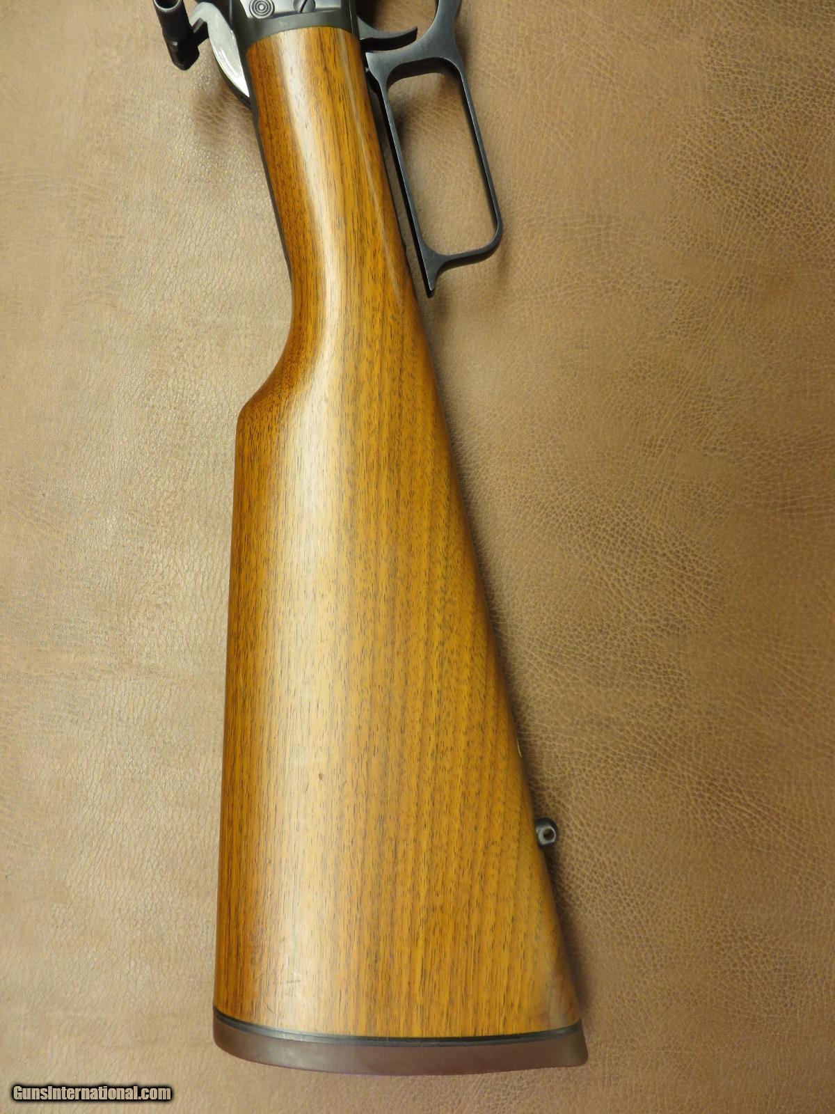 Description: .357 Magnum has 18 1/2 inch barrel with original sights. Made in 1992 in North Haven Ct. with JM stamped barrel. Crossbolt safety and hammer extension. Non checkered walnut with original rubber butt pad and sling swivel studs. Blue and wood finish are 98% with just a little freckling on sides of receiver. SOLD |