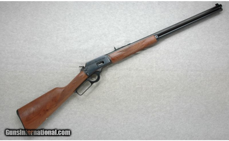 Description: SOLD Caliber Info: .45 Colt Chambers: Full tube magazine. Metal Condition: Excellent Wood Condition: Excellent Bore Condition: Excellent Barrels: 24 inch octogon. Stock: Diamond checkered walnut straight stock. Stock Dimensions: LOP 13 3/8 inches. Fore End: Diamond checkered with a steel end cap. Butt Pad: Marlin checkered black plate. Weight: 6 lbs. 9 oz. Sights: Blade front. Adjustable bucKhorn with white rear. Item Location: Richfield, WI |