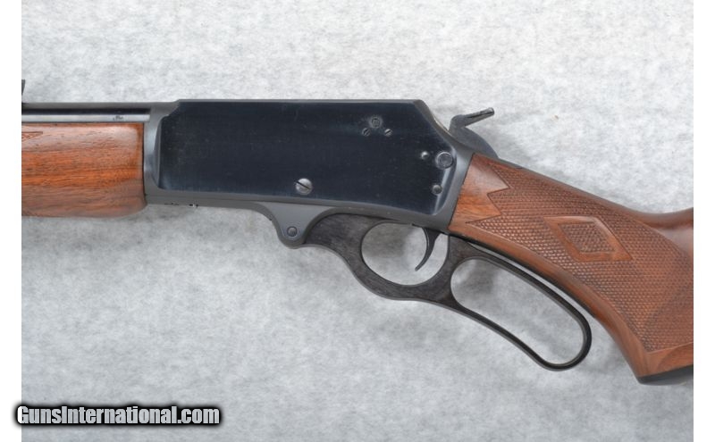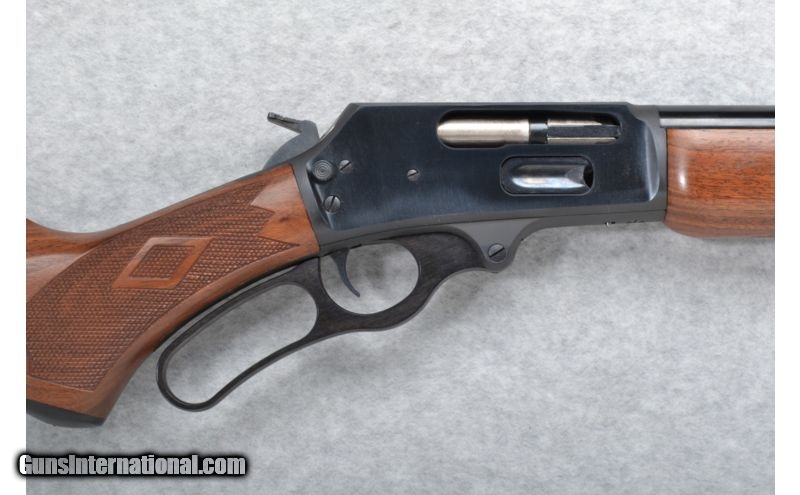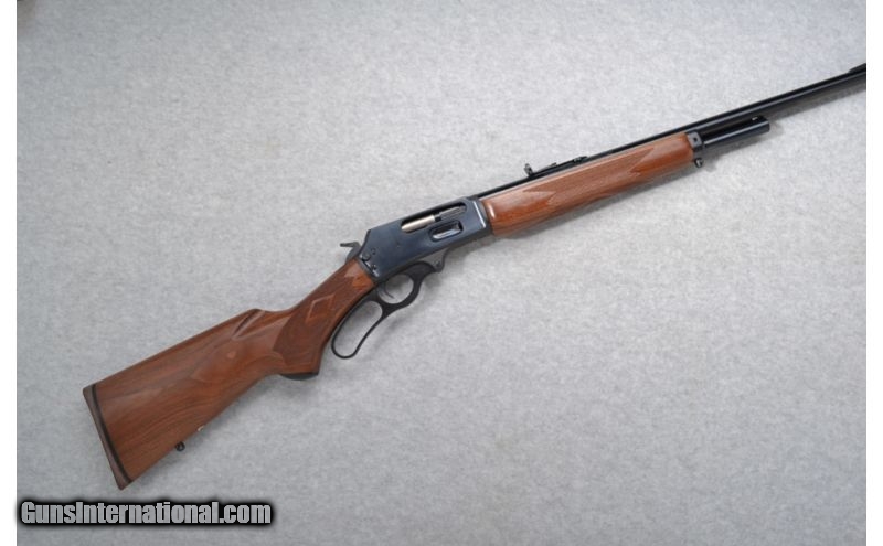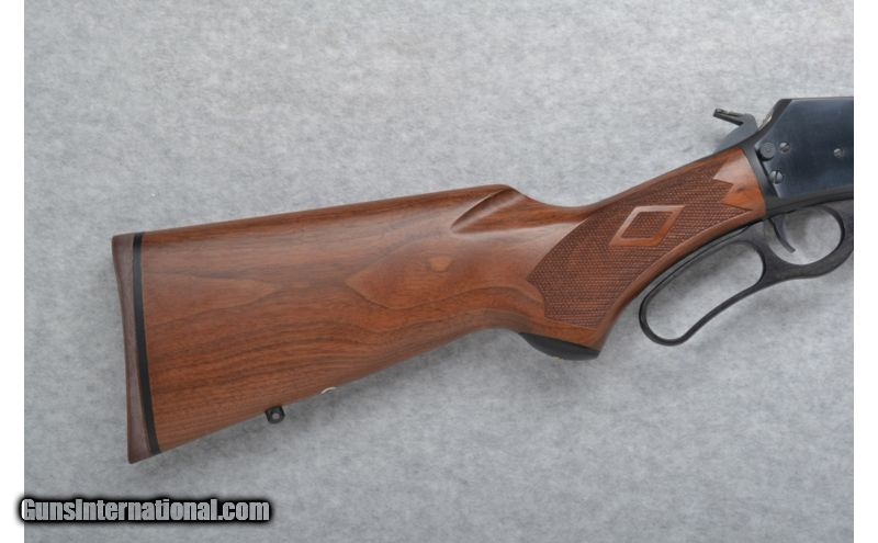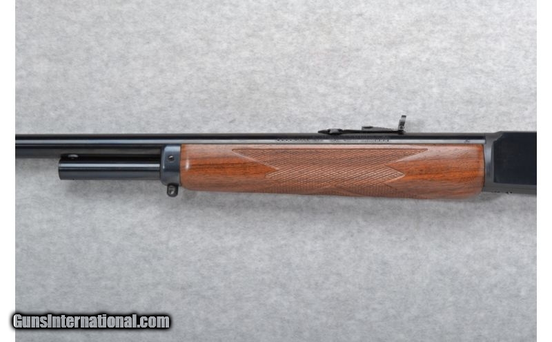Description: SOLD Caliber Info: .45-70 Gov't. Chambers: Tube magazine. Metal Condition: Excellent with light marks on top of receiver from previous scope mount. Wood Condition: Excellent. Bore Condition: Excellent. Barrels: 22 inches. Stock: Diamond checkered hardwood pistol grip with a black cap. Stock Dimensions: LOP 13 5/8 inches. Fore End: Diamond checkered hardwood with a metal tip. Butt Pad: Marlin rubber pad. Weight: 7 lbs. 8 oz. Sights: Hooded blade front. Adjustable middle. Item Location: Richfield, WI |