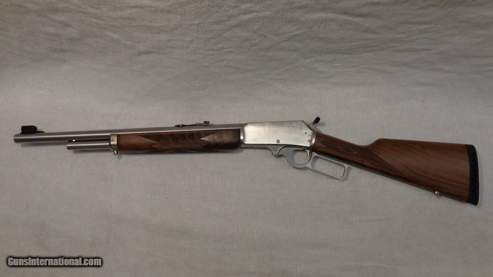 Description: Guns Listing ID: 366564 This Marlin is in excellent condition overall showing a few very small dings on the furniture. SOLD Manufacturer: MARLIN Model: MODEL 1895 GS Caliber Info: .45-70 GOVT Condition: Used - Non-Certified Barrels: 18 BARREL Action: LEVER ACTION Finish: STAINLESS Weight: not specified |