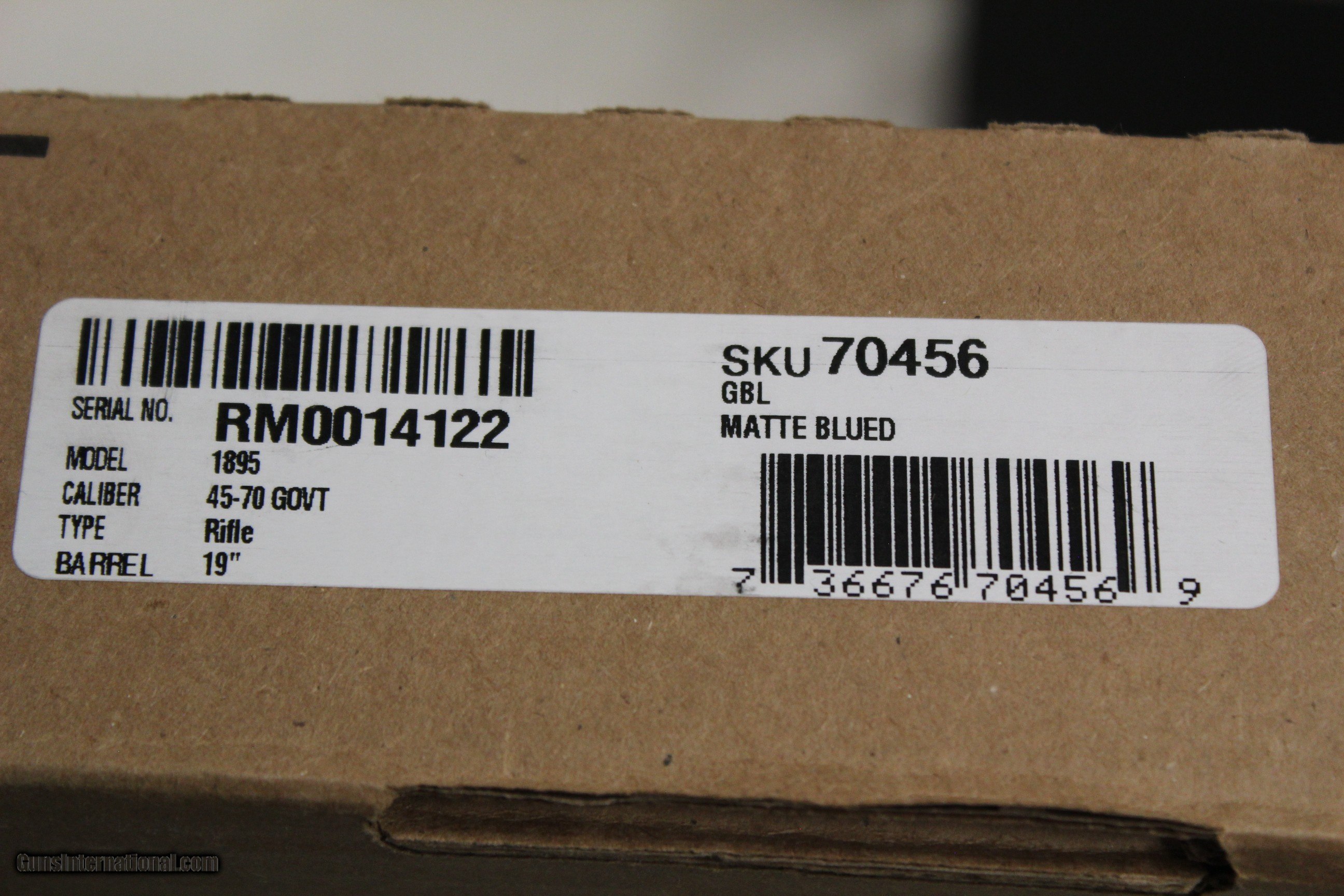 PRODUCT DESCRIPTION Ruger is pleased to introduce the Marlin Model 1895™ Guide Gun - Ruger's first model in the Marlin® Guide Gun family of rifles. Formerly known as the 1895 GBL, this rifle is the first alloy steel, blued, Ruger-made Marlin rifle. Chambered in .45-70 Govt., the Model 1895 Guide Gun is compact, easy handling and a great rifle for hunting big game. • Receiver, lever and trigger guard plate are CNC machined from alloy steel forgings. • 19.10'' barrel is made of alloy steel and is cold hammer-forged which results in ultra-precise rifling that provides exceptional accuracy and longevity. • Threaded barrel, with factory-installed thread protector, has an 11/16''-24 pattern to accommodate a muzzle brake or other barrel accessories. • Glass bead-blasted components for a satin finish. • Adjustable semi-buckhorn sights are great for quick target acquisition. • Six-round, tubular magazine with a loading gate located on the receiver. • Soft rubber buttpad effectively absorbs recoil. • Positive, push-button, cross-bolt manual safety and traditional half-cock hammer. • Reliably feeds a wide range of .45-70 Govt. factory ammunition and bullet types. • Durable, laminate buttstock and forend remain dimensionally stable in varying weather conditions. • Sharp checkering provides an excellent grip in all weather conditions. • Nickel-plated bolt aids smooth cycling. • Oversized lever loop provides clearance for operation with heavy gloves. • Slim forend for an attractive look and comfortable feel. • Also includes: Sling swivel studs, offset hammer spur.
