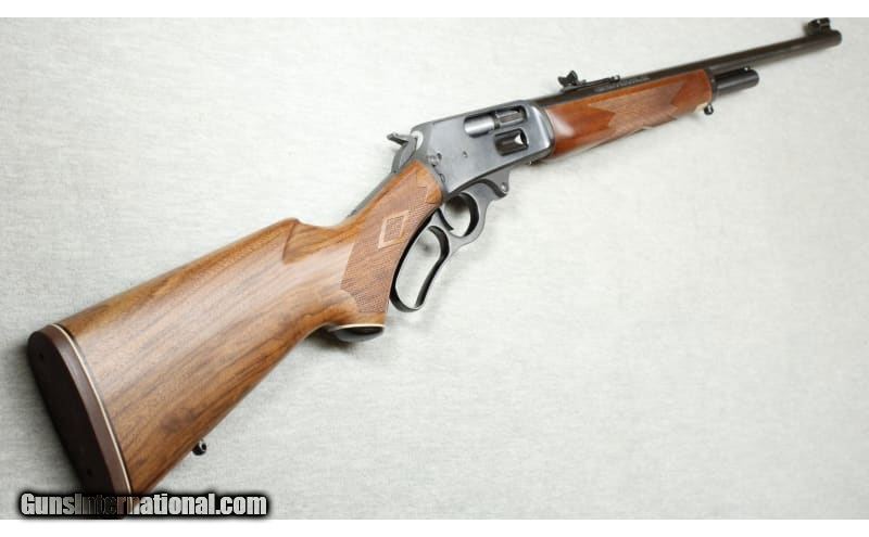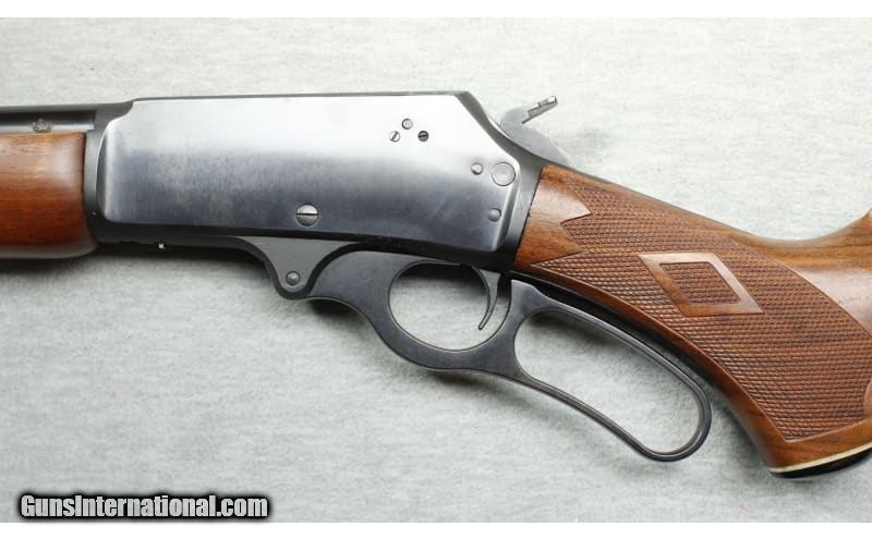 Description: Excellent condition, light wear, few small nicks & scratches. Marlin lever action rifle, 22" heavy barrel with 2/3 length mag tube, factory black finish, bead front & buckhorn rear sights, and smooth lever action. Checkered hardwood forend and buttstock with Marlin factory recoil pad and sling swivel mounts. .45-70 Government SOLD Chambers: Lever action Metal Condition: Excellent Wood Condition: Excellent Bore Condition: Bright Barrels: 22 Triggers: Factory Stock Dimensions: 13 1/2" LOP Fore End: Checkered Butt Pad: Factory pad Sights: Bead front & buckhorn rear sights Item Location: La Vista, NE |